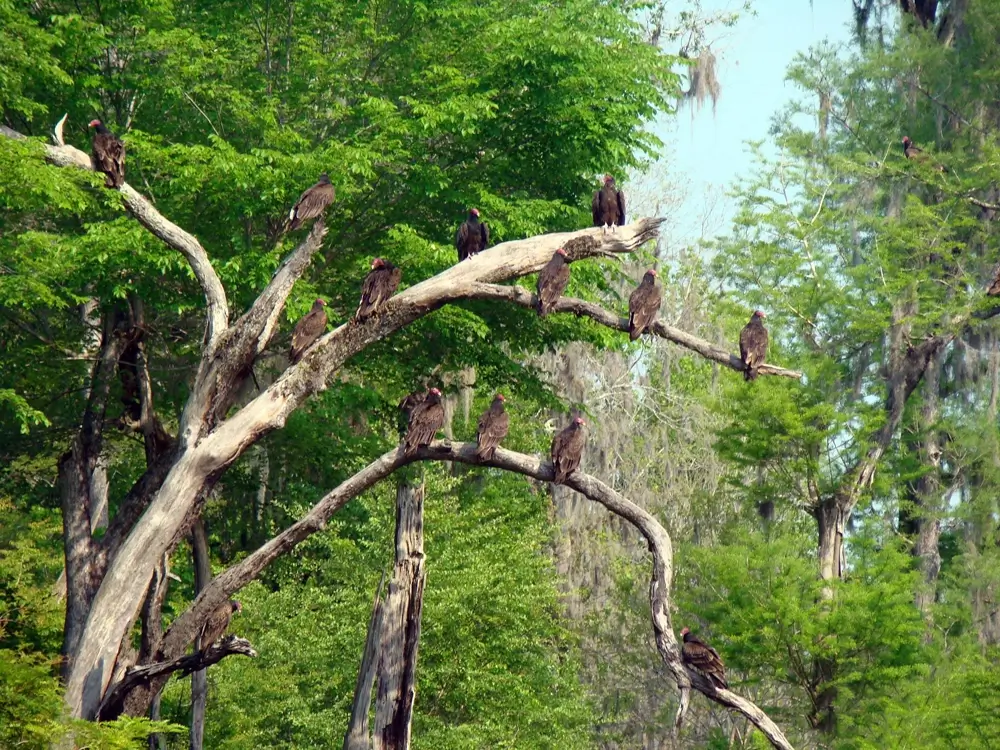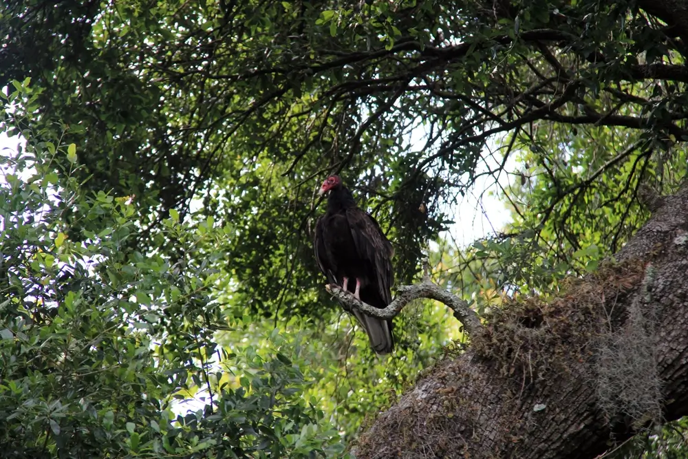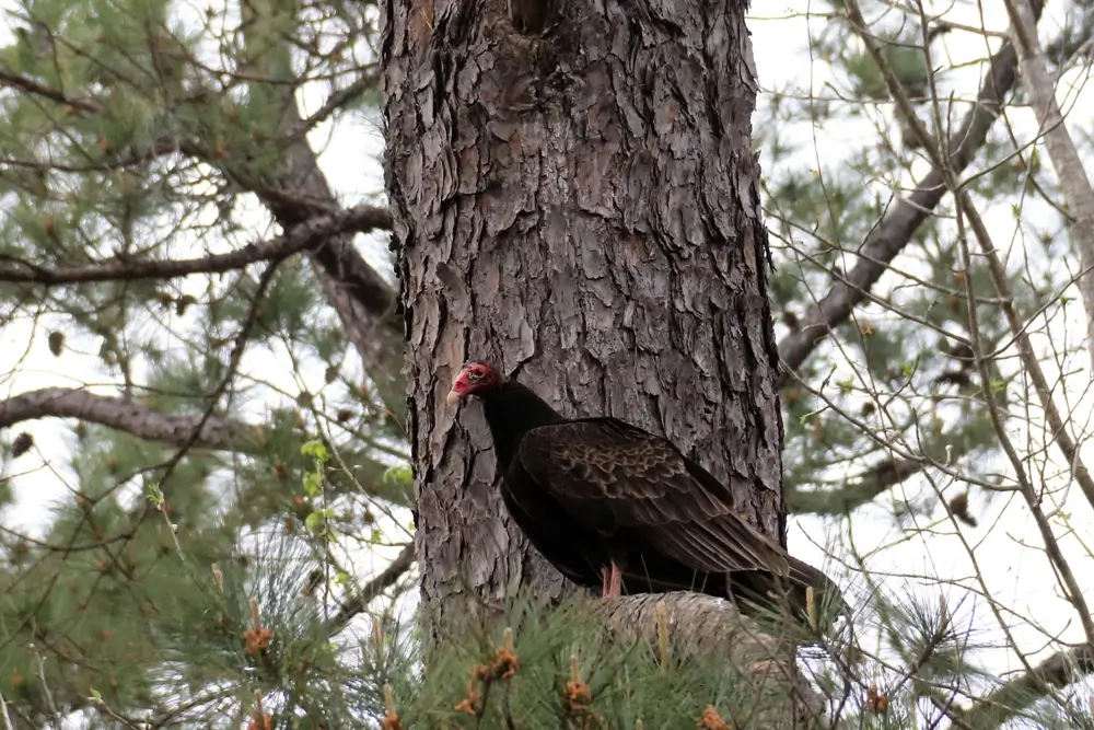 At night, turkey vultures gather in groups and roost in trees.