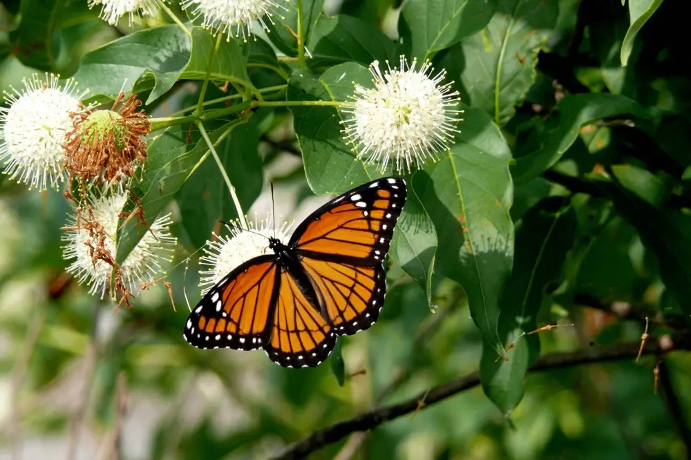 The viceroy butterfly lives in meadows, marshes, swamps, and other wet areas with willow, aspen, and poplar trees.
