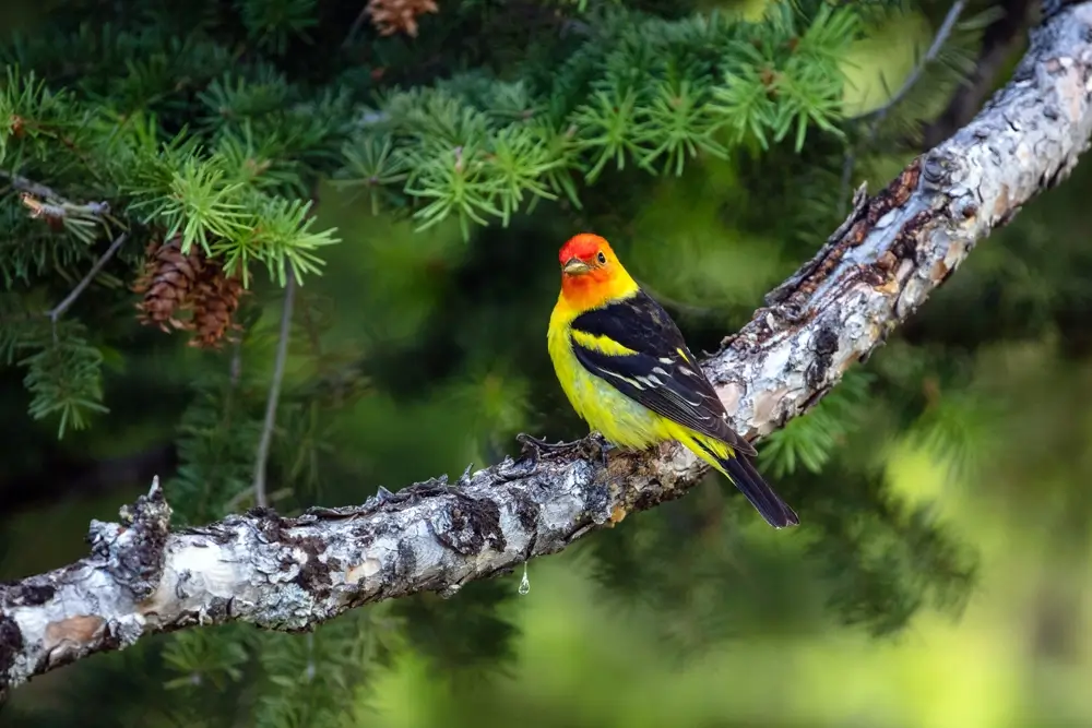 The western tanager is a long-distance migrator. Every year, it travels between its wintering grounds in Mexico and Central America to its breeding grounds in western North America.