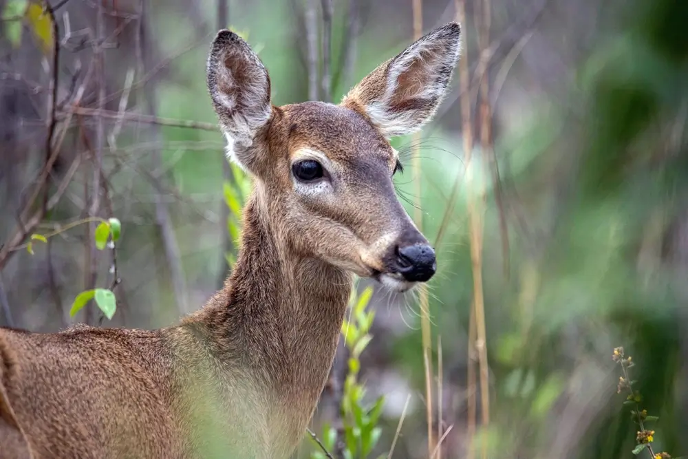 The white-tailed deer lives in wooded areas. In some areas, deer overpopulation is a problem. Gray wolves and mountain lions are predators of white-tailed deer and help keep their population under control, but because of hunting and human development, there are not very many wolves and mountain lions left in most regions of North America.