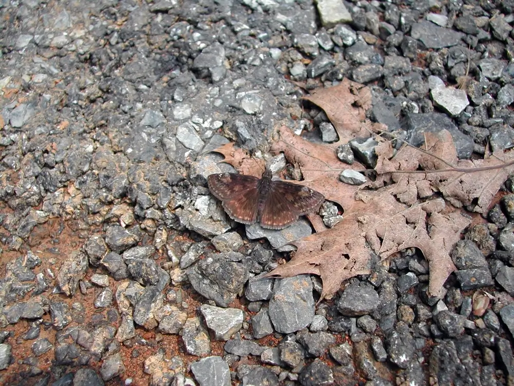 The wild indigo duskywing is found in open woods, railroad beds, and on the sides of highways.