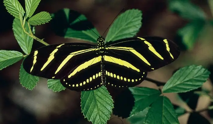 The zebra longwing butterfly lives in warm, damp tropical areas. It is often found in hammocks and thickets.