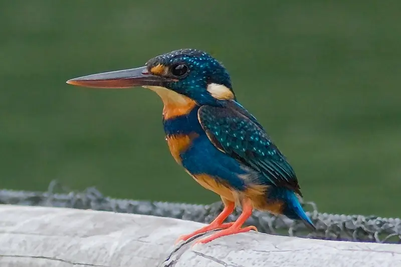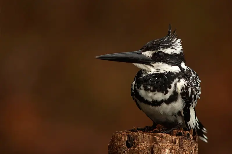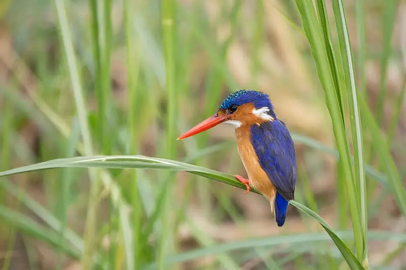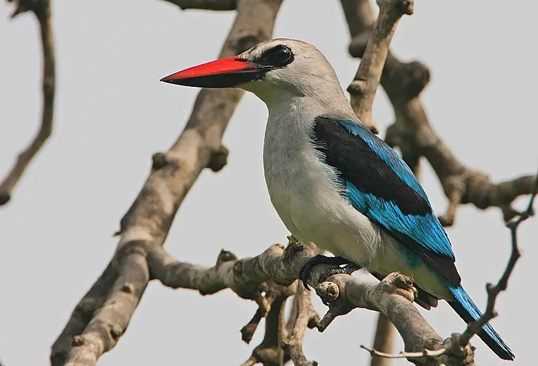 The bills of kingfishers are usually black, orange, red, or yellow. Many species are brightly colored and have distinctive markings.