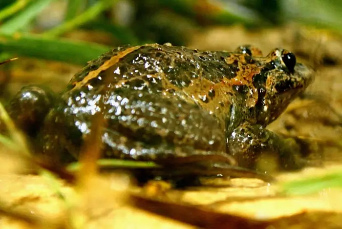 Midwife toads and painted frogs have rounded tongues and are sometimes known as disc-tongued frogs. Most frog and toad species have long, slender tongues.