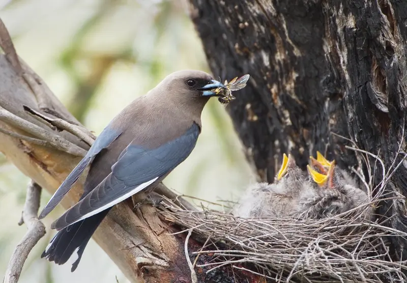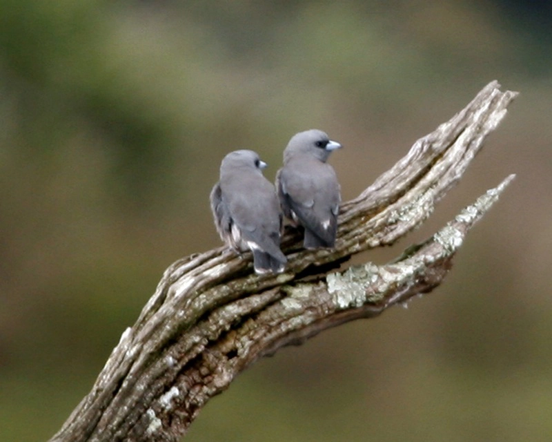 Artaminae are the woodswallows. They are dull in color and catch insects while in flight. They have long, pointed wings; sturdy bills; and, unlike most passerine birds, can soar.