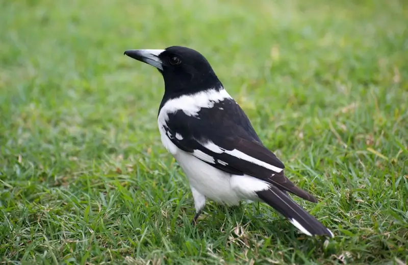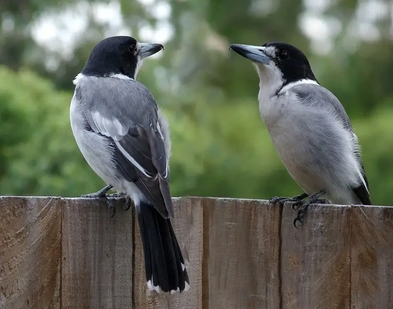 The second subfamily, the Cracticinae, includes the Australian magpie, the butcherbirds, and the currawongs. They are black and white or gray and white and have distinct and beautiful songs.