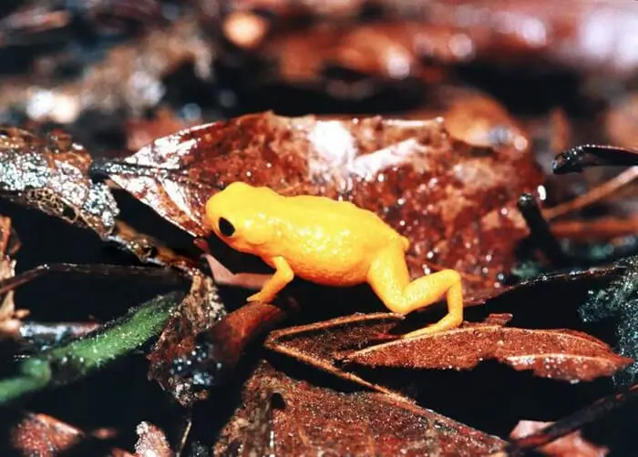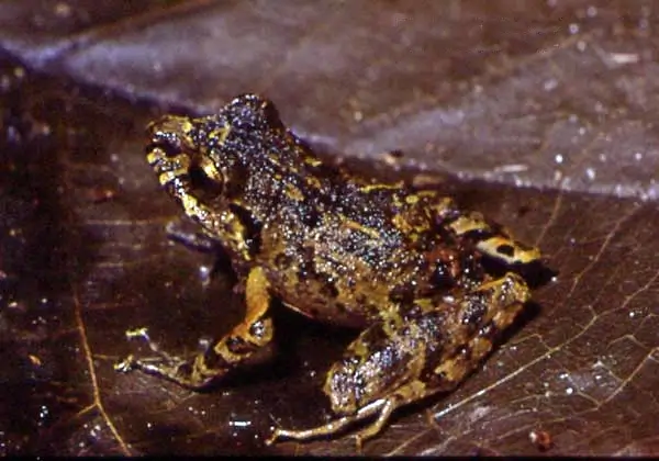Saddleback toads live in the leaf litter on the forest floor. Because they lay their eggs on the ground, they do not have a tadpole stage of development.