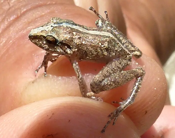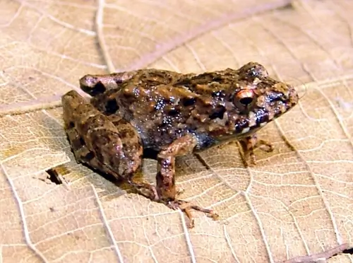 Saddleback toads are found in the forests of southeastern Brazil and northern Argentina. They are tiny and have three digits on each hind leg and two on their front legs. Most frogs and toads have five digits on their hind legs and four digits on their front legs.