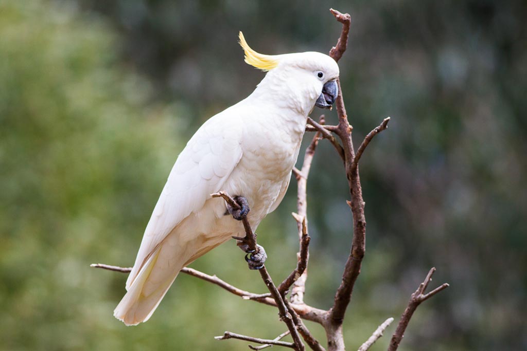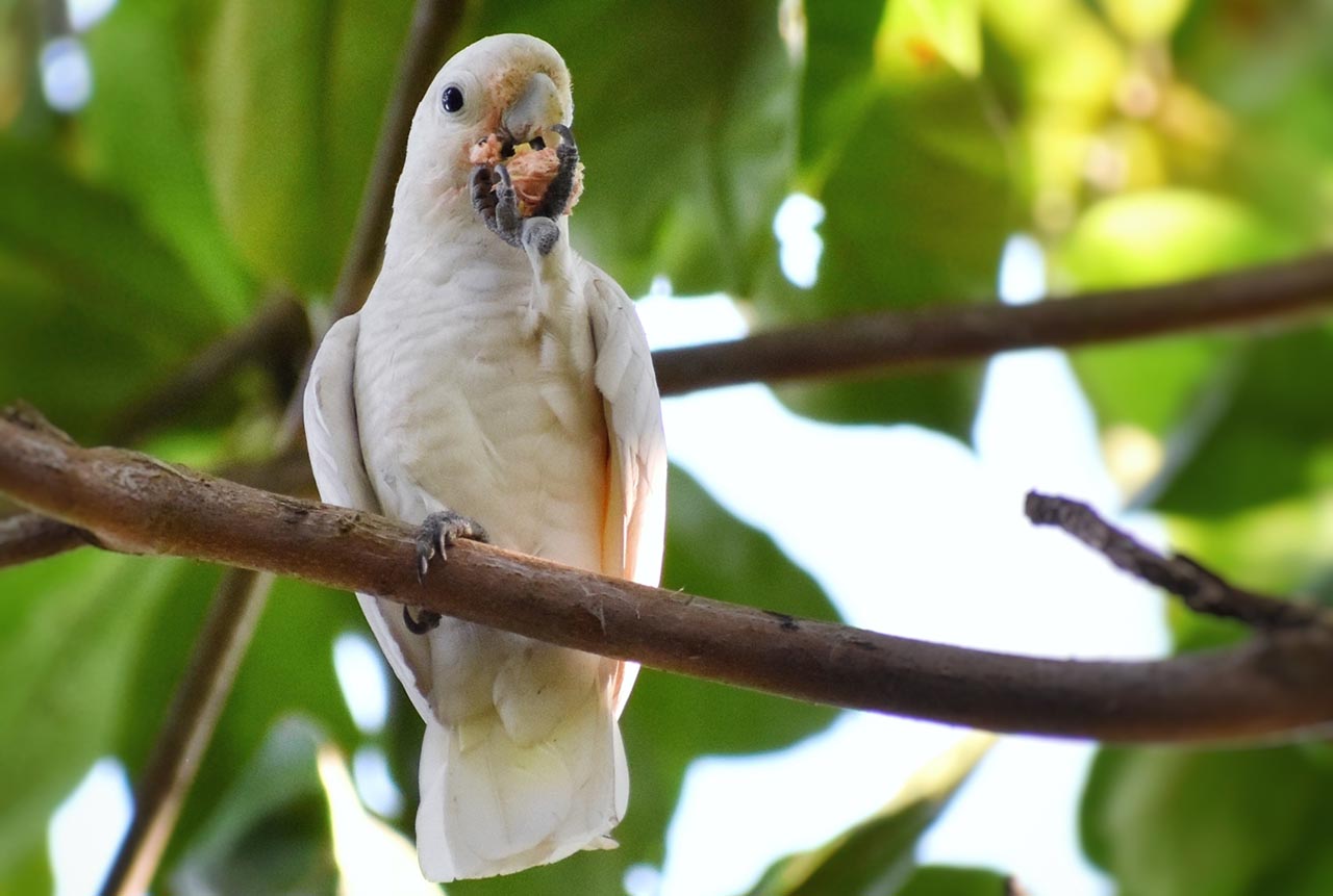 Cockatoos use their strong beaks to crack nuts, eat seeds, and even tear apart branches.