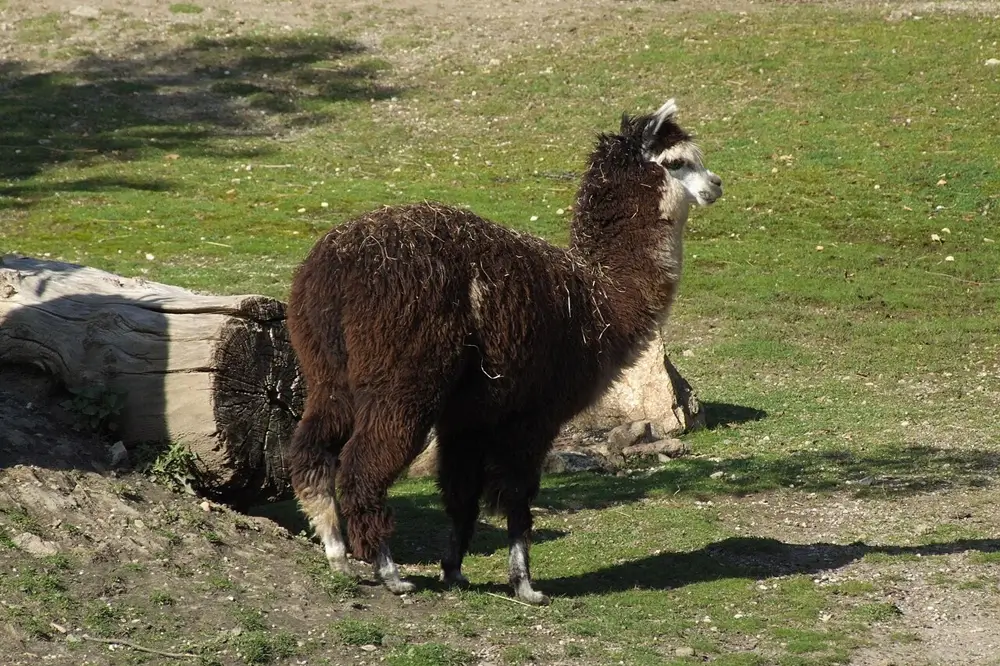 The alpaca was also domesticated from the guanaco. The alpaca is slightly smaller than the llama. It is about 5 feet tall from its head to its toes. It looks like the llama. Unlike the llama, the alpaca is not used as a pack animal, but its soft, shaggy fur is used to make clothing.