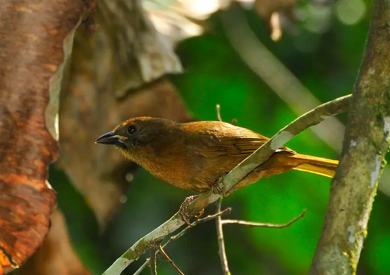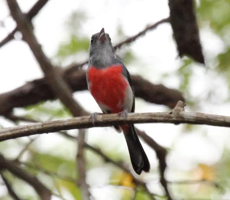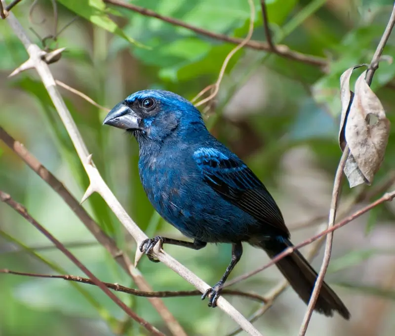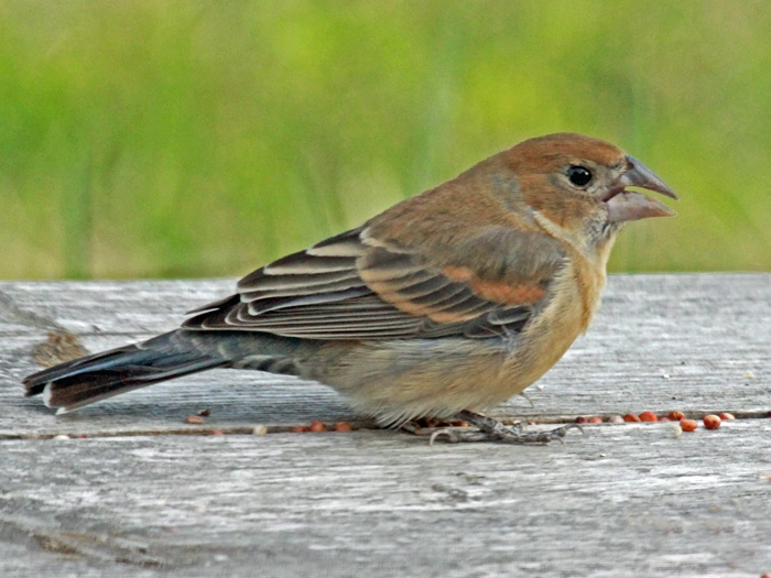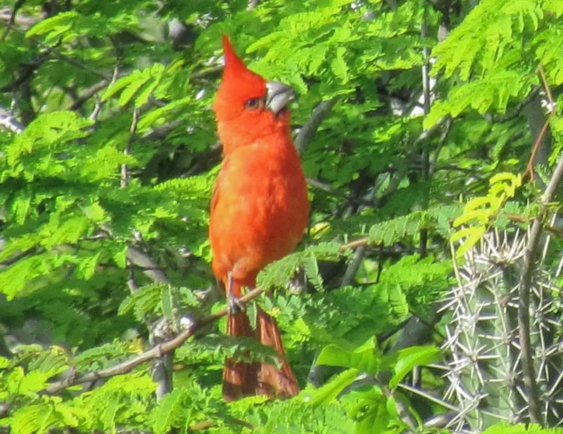 Birds in the Cardinalidae family are medium-sized and eat seeds. They have strong, cone-shaped bills that can crack open seeds. They usually live in open areas or on the edges of woodlands.