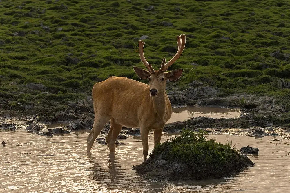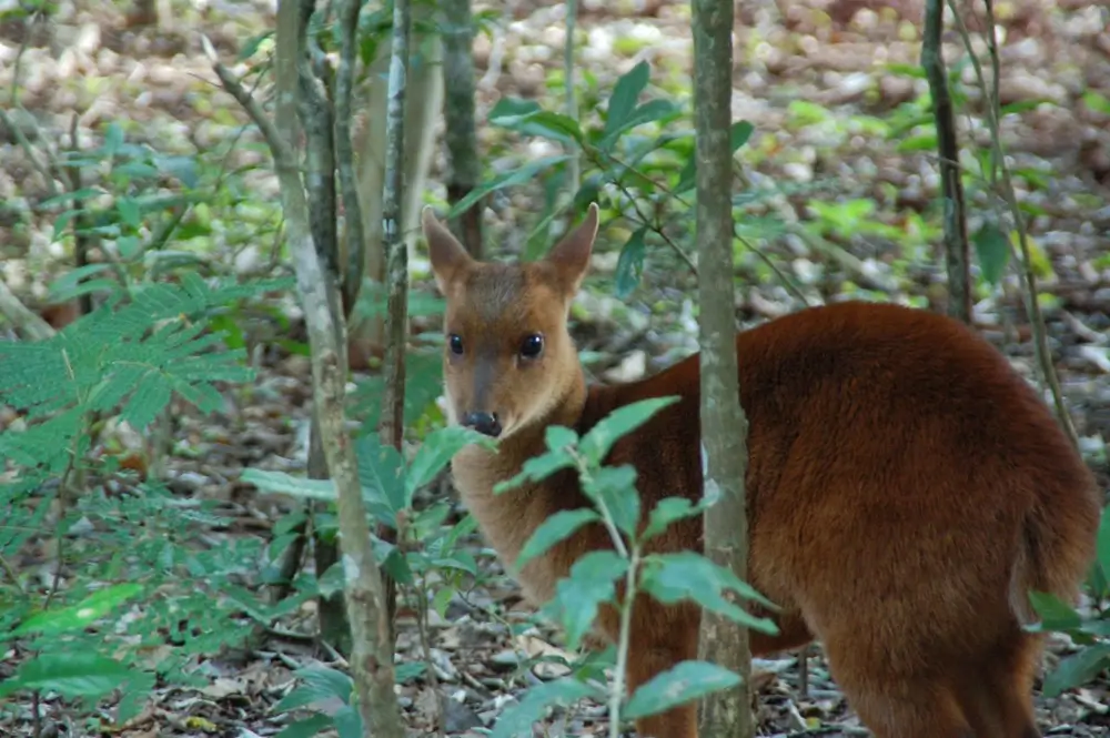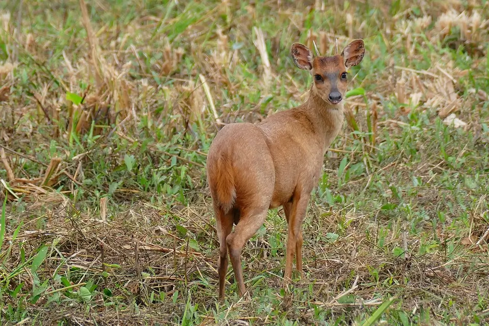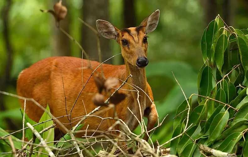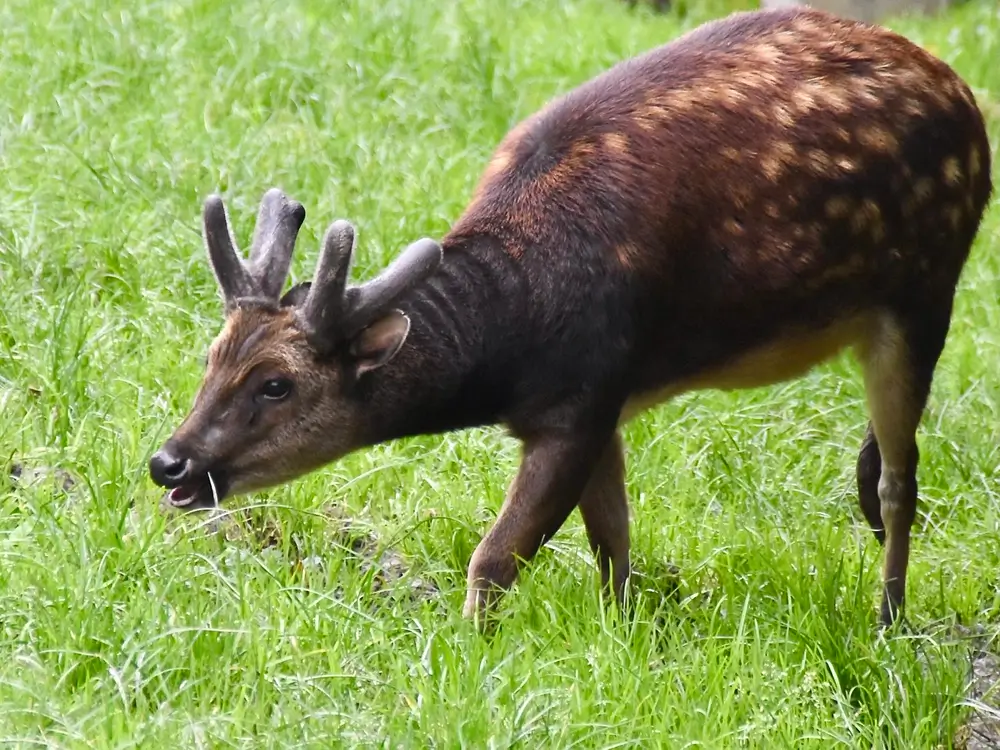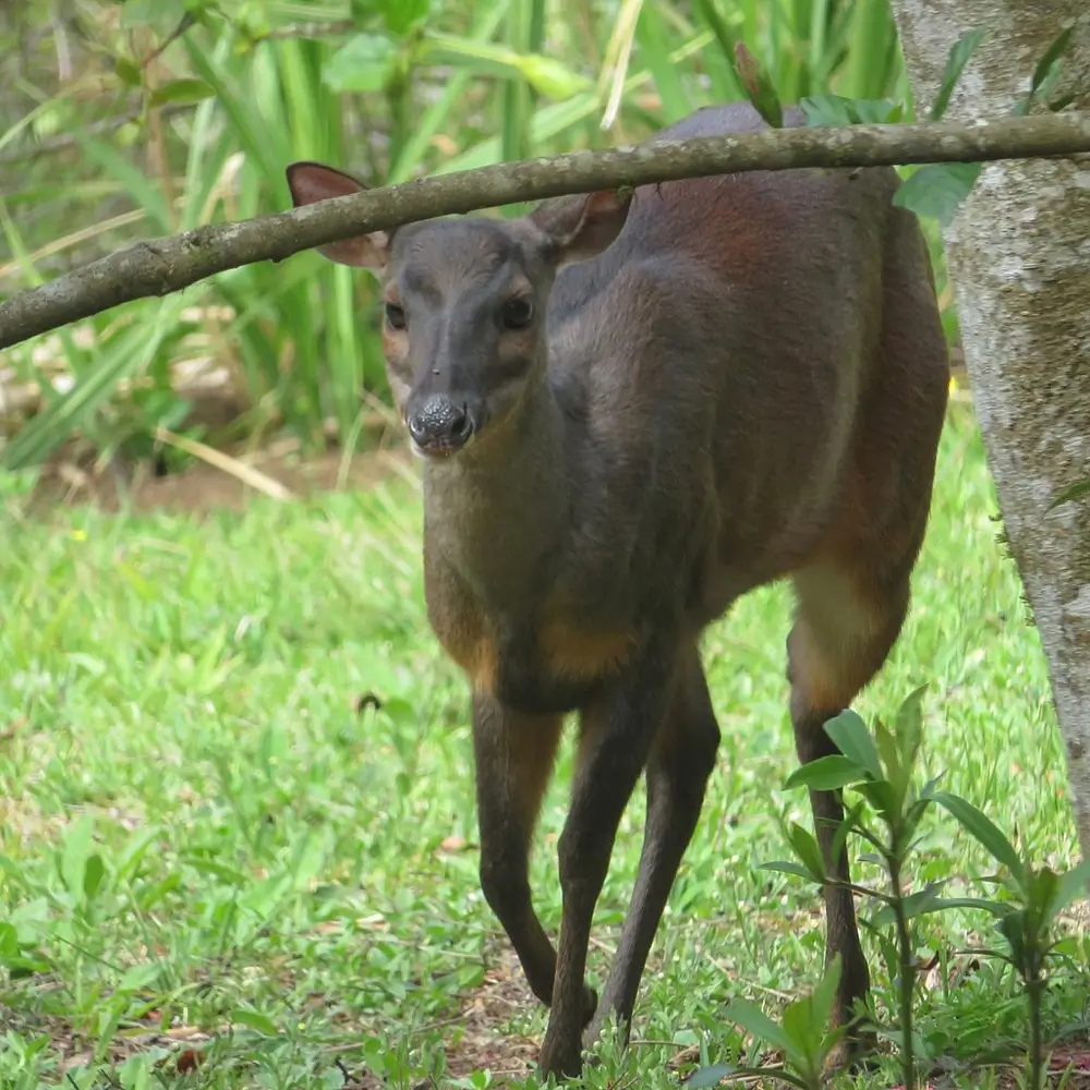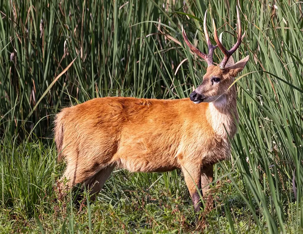 Members of this family have long legs with two toes on each of their hoofed feet. They have long heads and short tails. In most species, the male has antlers. The species in this family range in size from the tiny Andean pudu, which is only 16 inches tall and weighs 22 pounds, to the largest member of the family, the moose, which can be 7 feet tall and weigh up to 1,600 pounds.