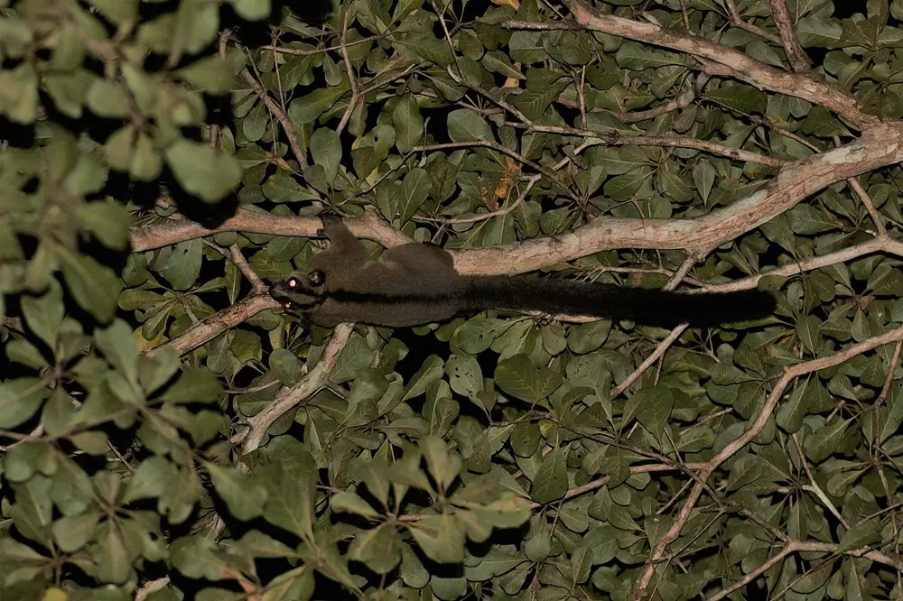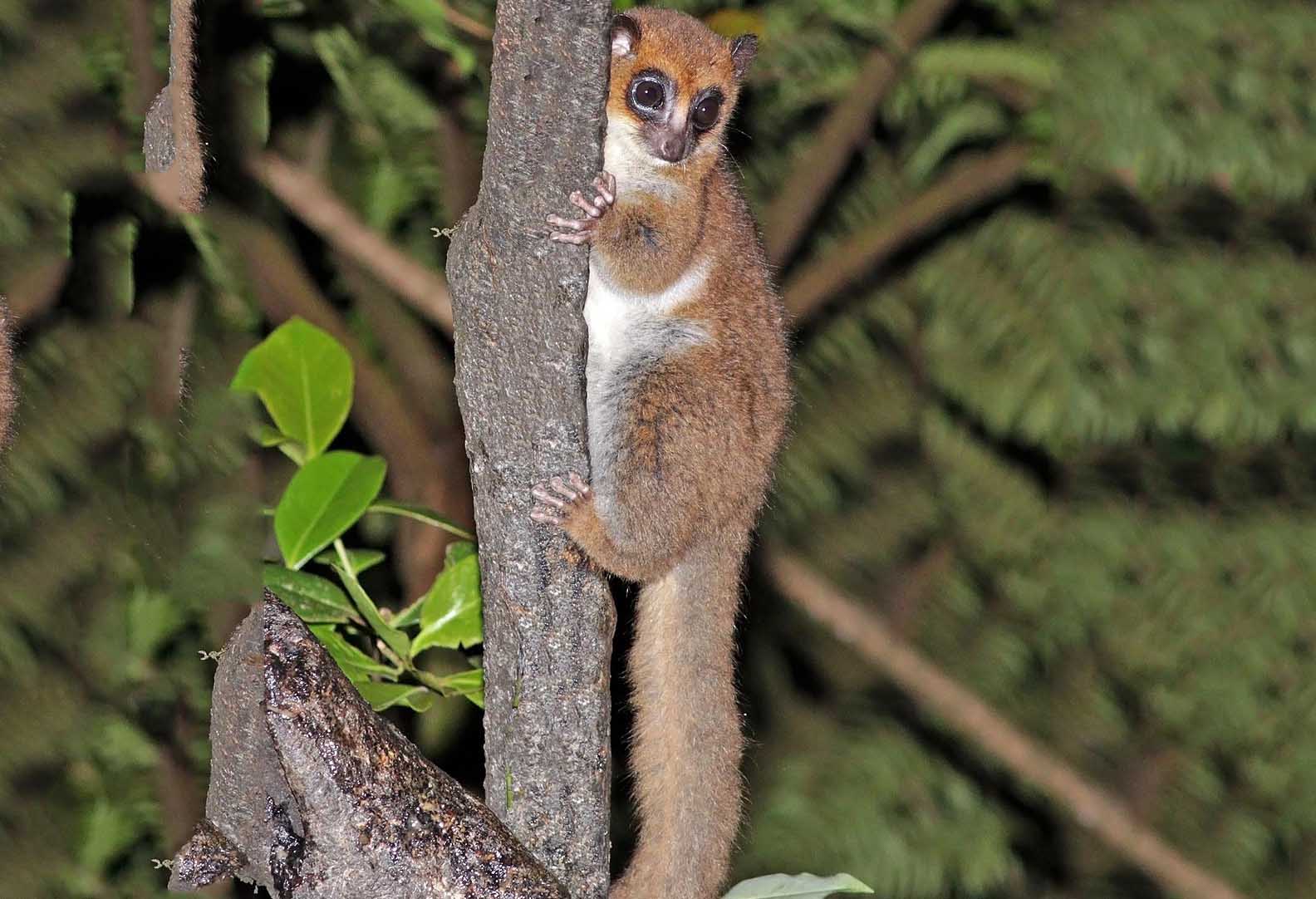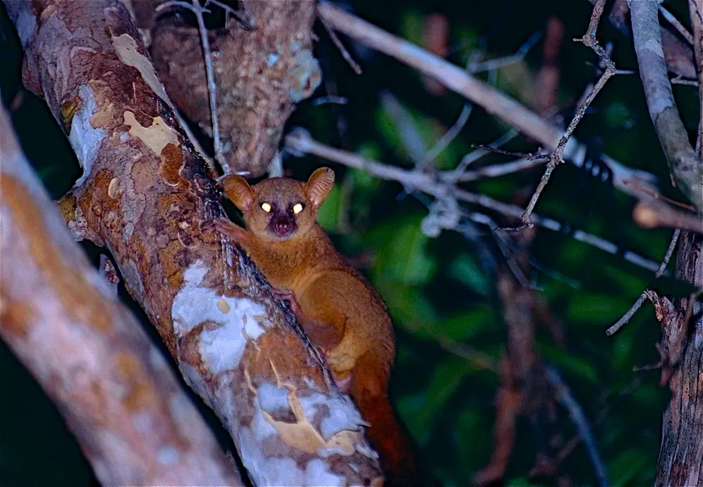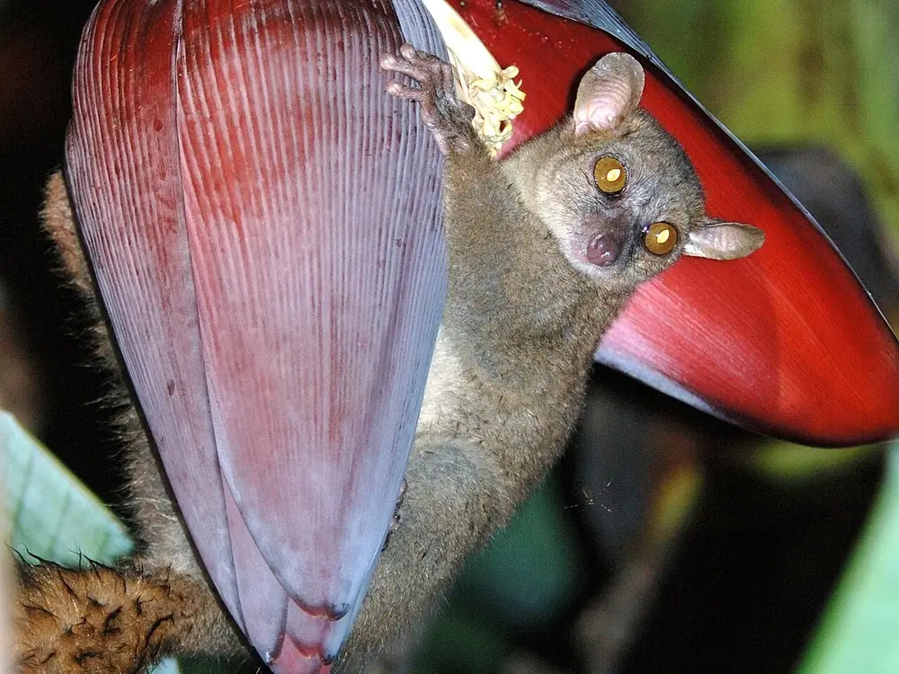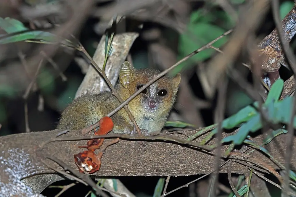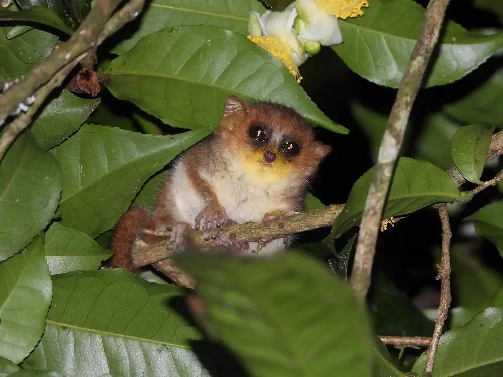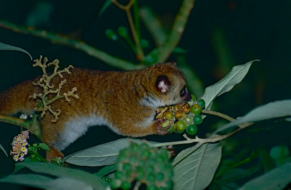 They live in trees and are nocturnal. They are omnivores and eat fruit, insects, spiders, flowers, leaves, and small vertebrate animals. They live alone or in pairs.