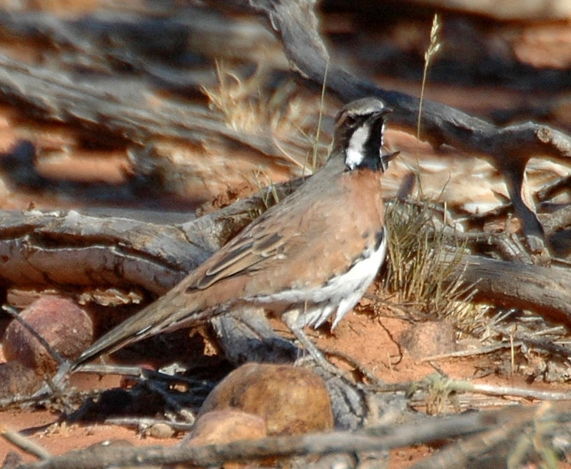 Quail-thrushes are small, ground-dwelling birds. They live in scrub areas and nest on the ground. They travel in pairs or small groups.