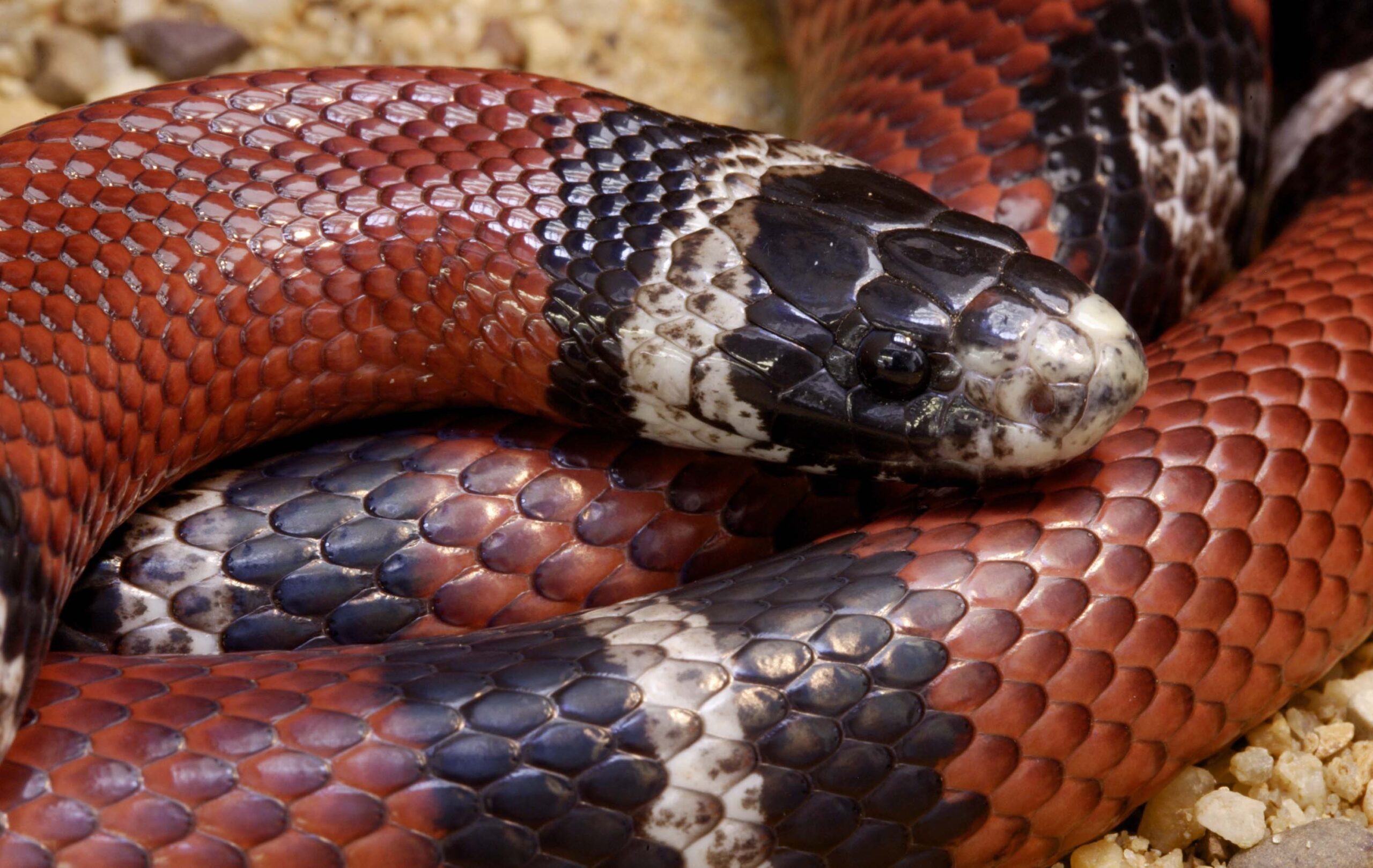Colubrids have smooth or slightly keeled scales (keeled scales have a slightly raised ridge down the center), round pupils, and many have bright colors or patterns to warn predators or hide in their environment.