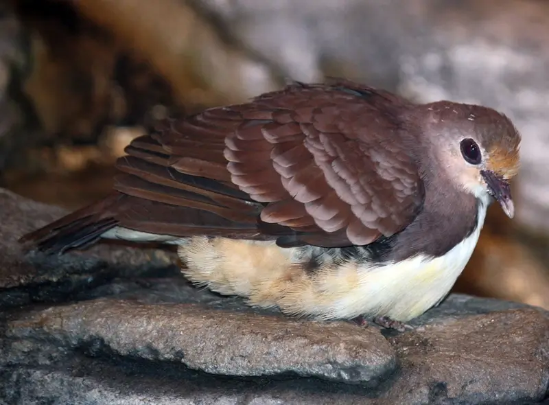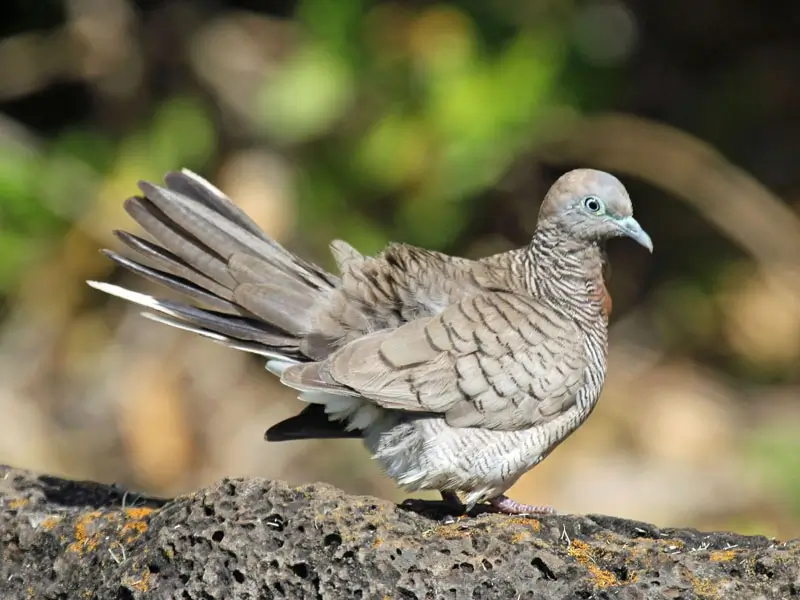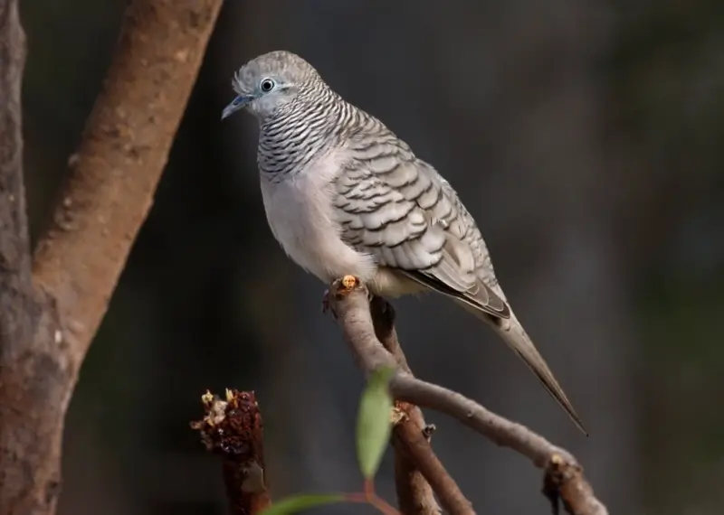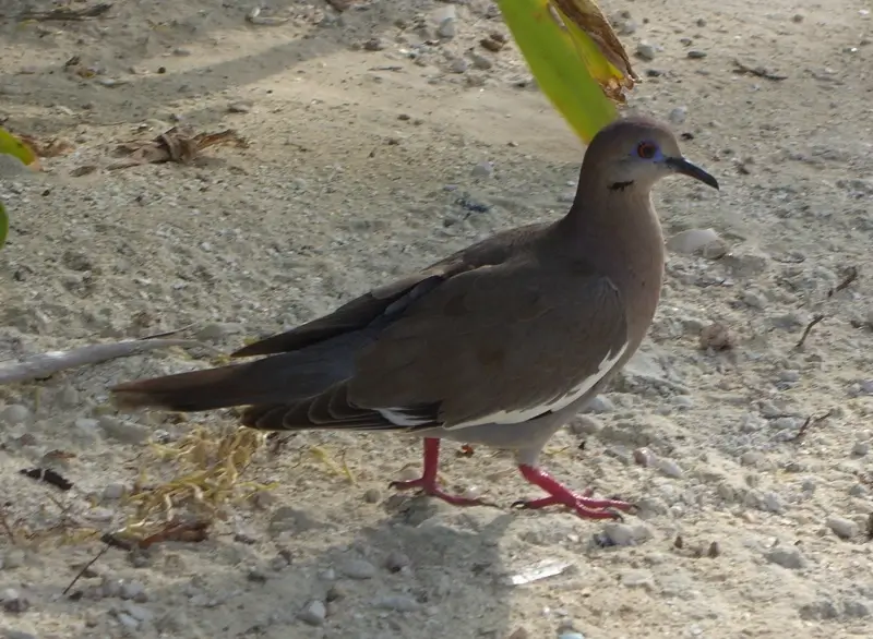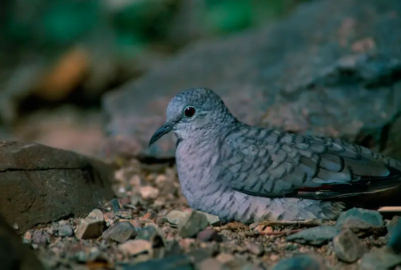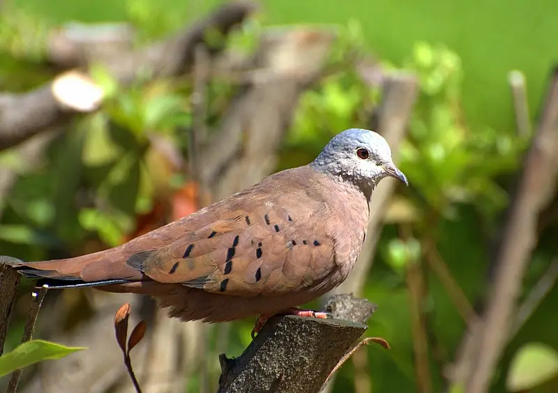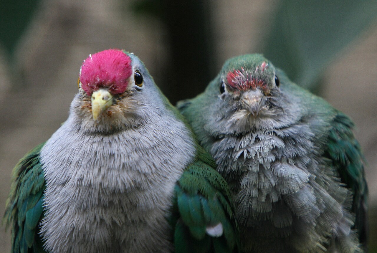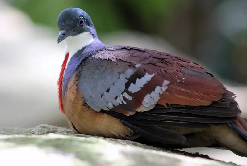 Pigeons and doves have small heads, plump bodies, short necks, and small bills with soft, fleshy covering at the base called the cere. They have a ring of skin around their eyes that can be red, yellow, blue, or white.