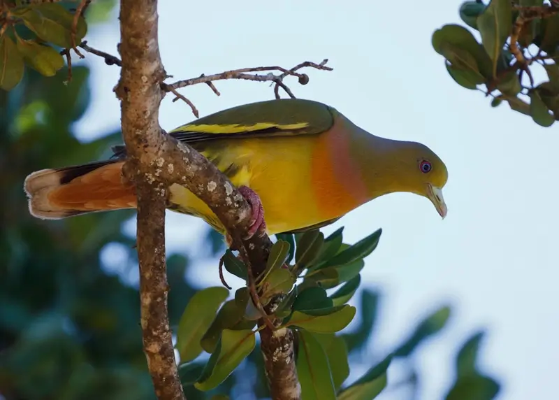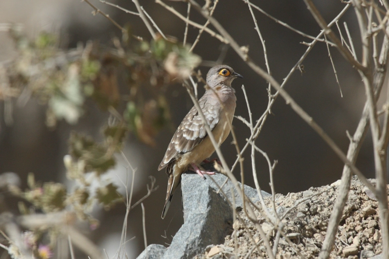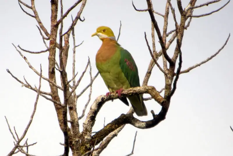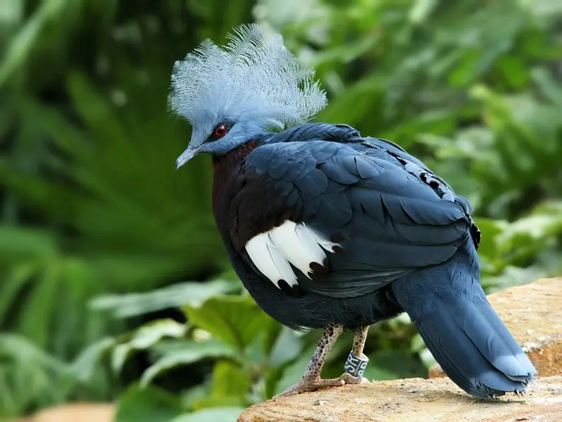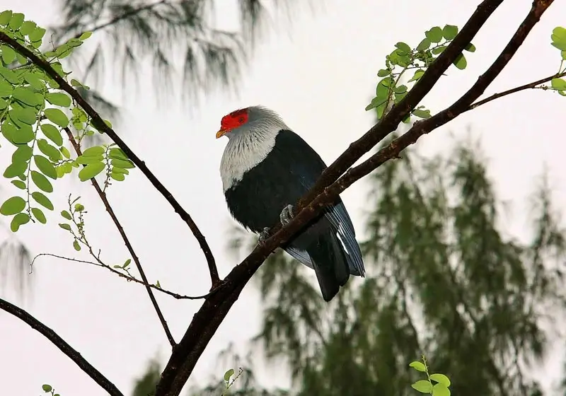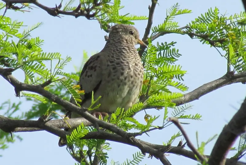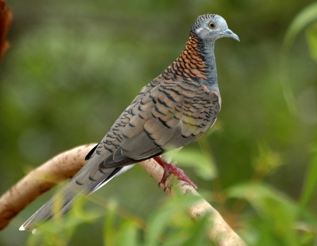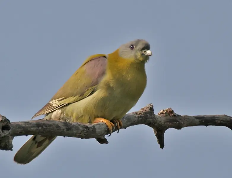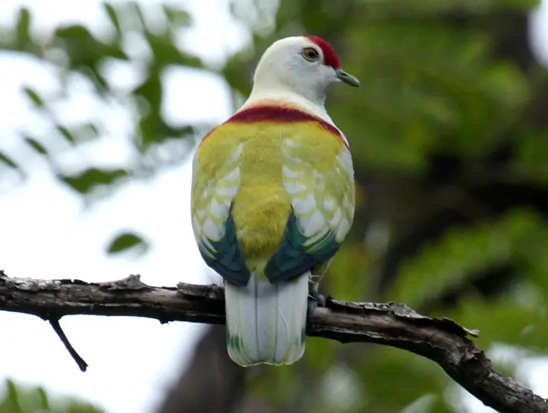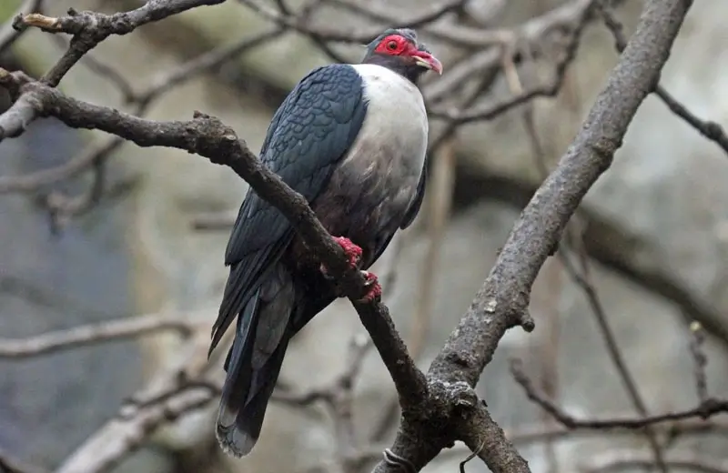 Pigeons and doves have small heads, plump bodies, short necks, and small bills with soft, fleshy covering at the base called the cere. They have a ring of skin around their eyes that can be red, yellow, blue, or white.