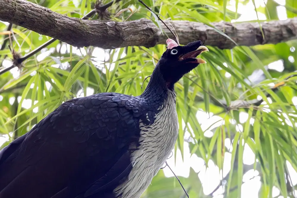 They nest in trees, and their chicks are precocial and can move around and feed themselves shortly after birth, and can fly a few days after hatching.