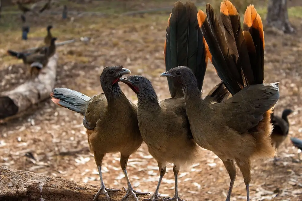 These birds are similar in shape to turkeys. They have long, thick tails; small bills, large feet, and small heads. They are dull in color and eat seeds, insects, worms, and fruit.