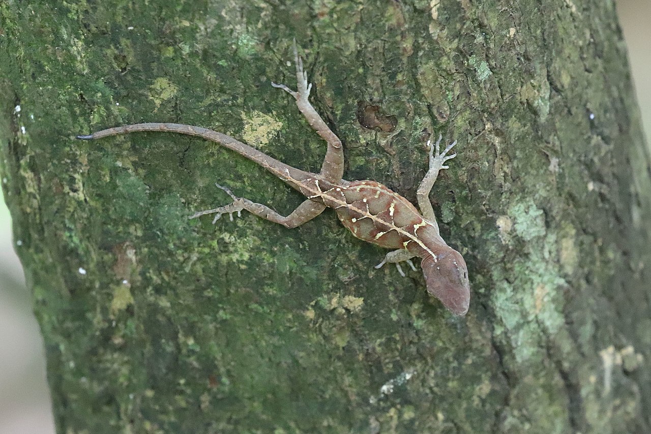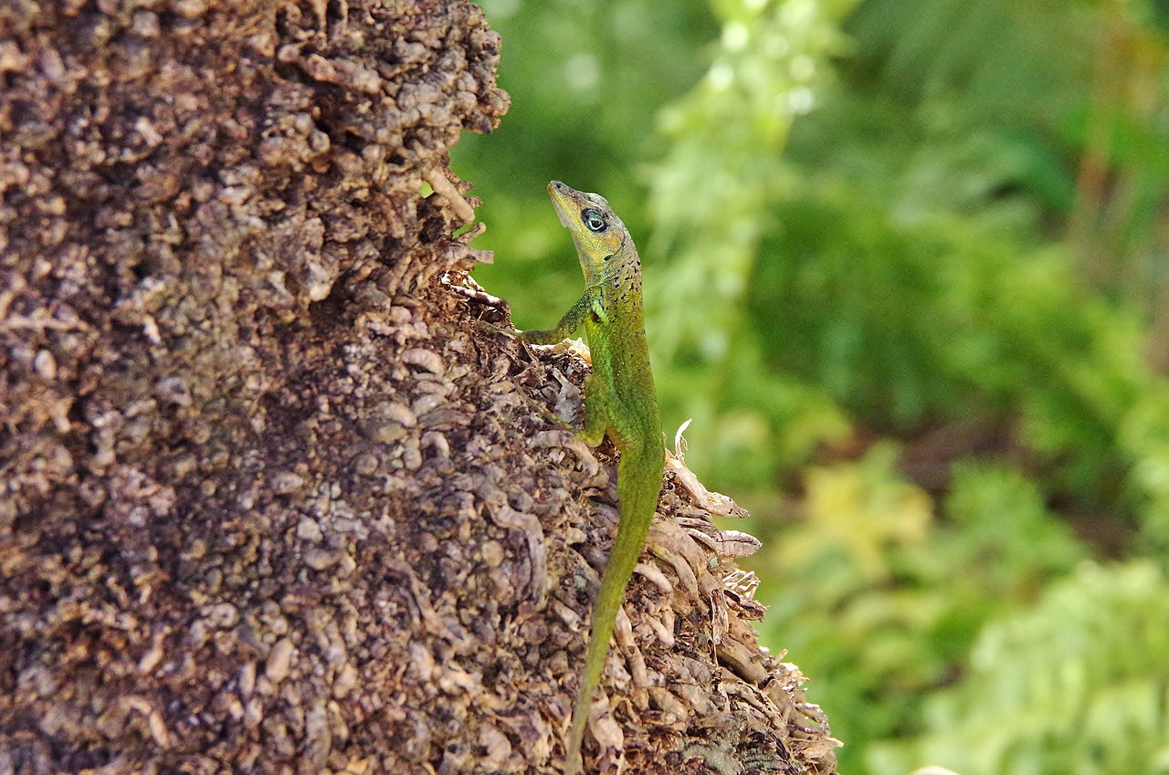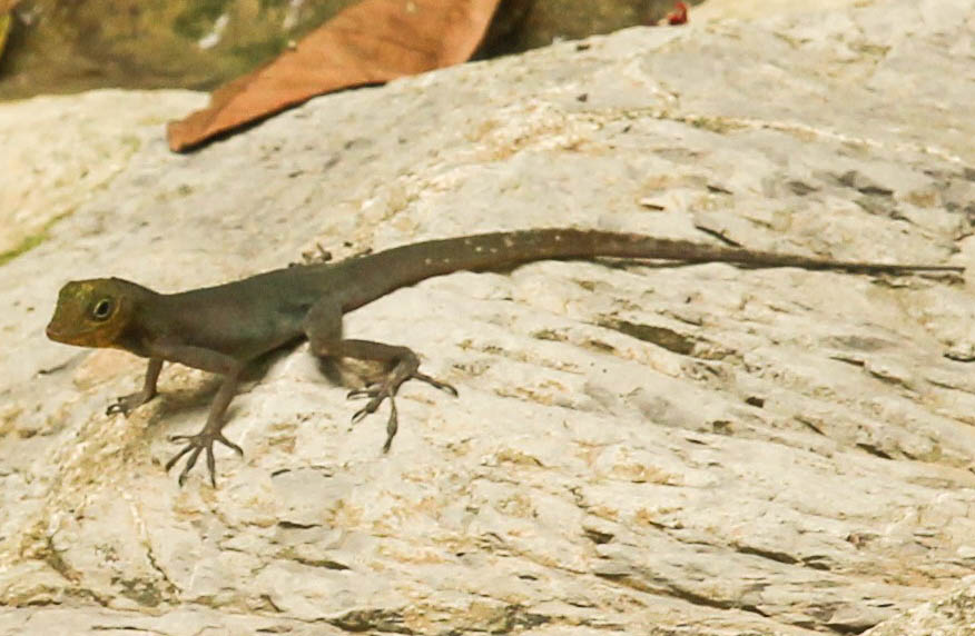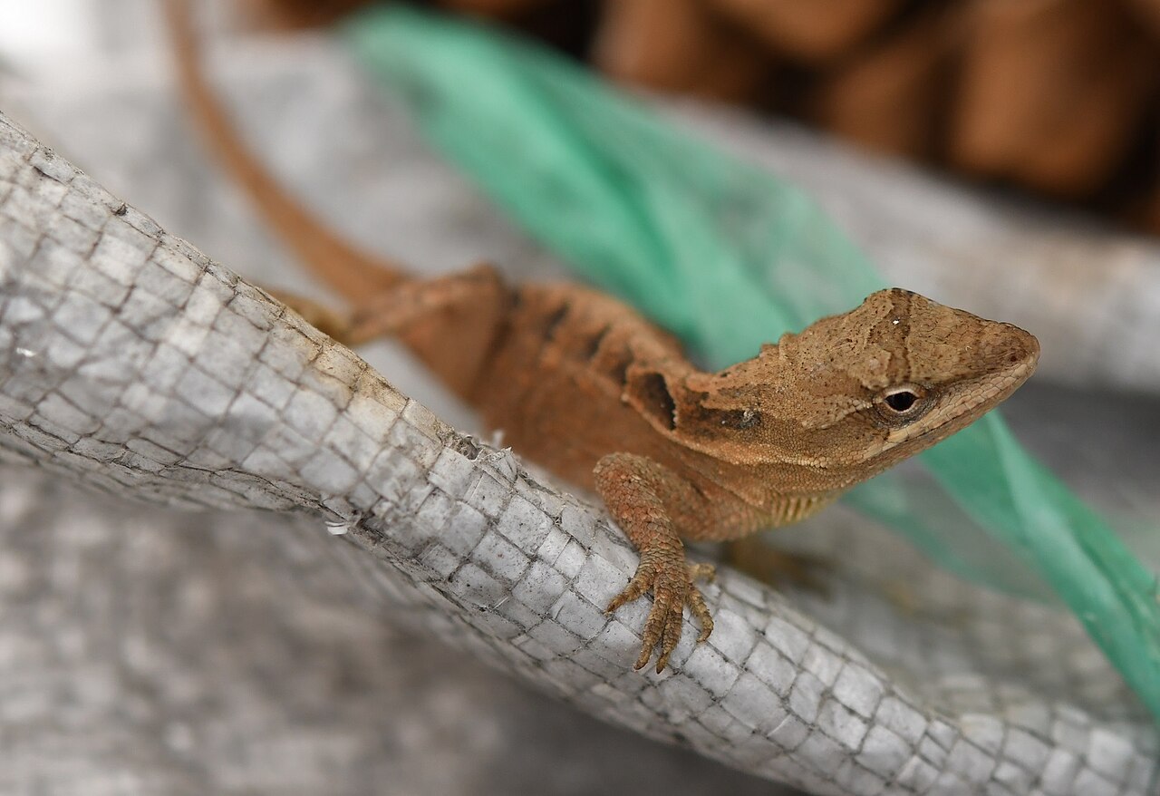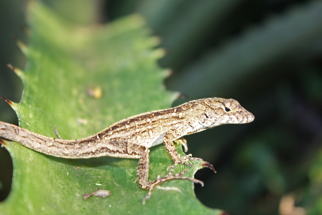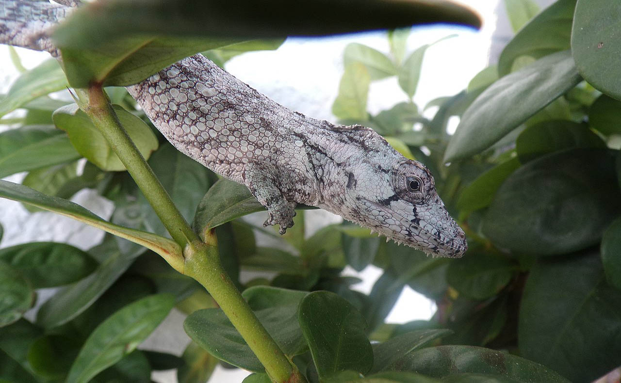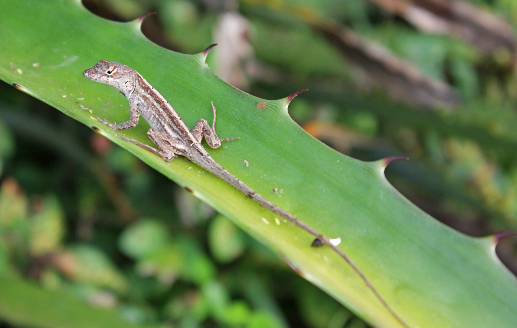 Many anoles can change color and have long tails and sticky toe pads that help them climb trees and walls.