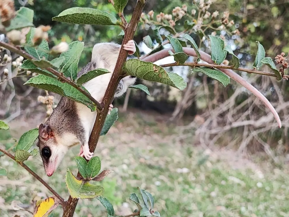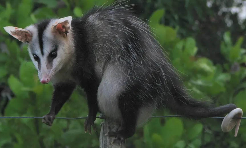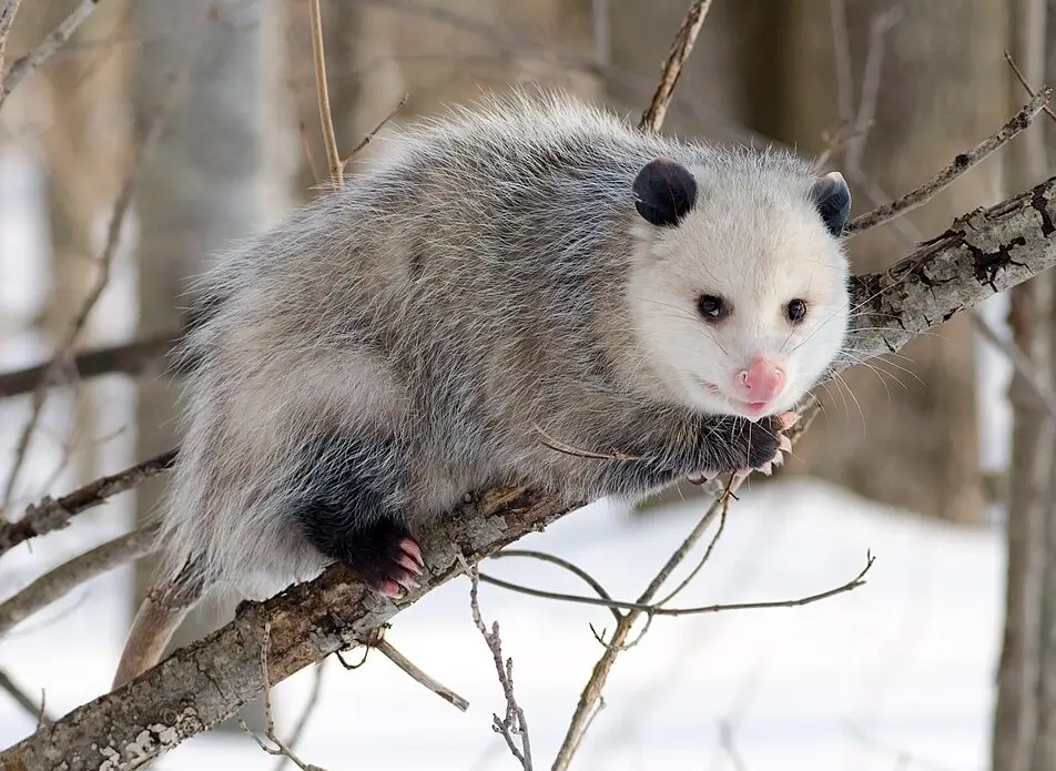 Opossums are marsupials. Marsupials have pouches. When female marsupials give birth, their young are blind, hairless, and helpless. They attach themselves to a teat in their mother’s pouch and suckle until they are large enough to emerge from her pouch.