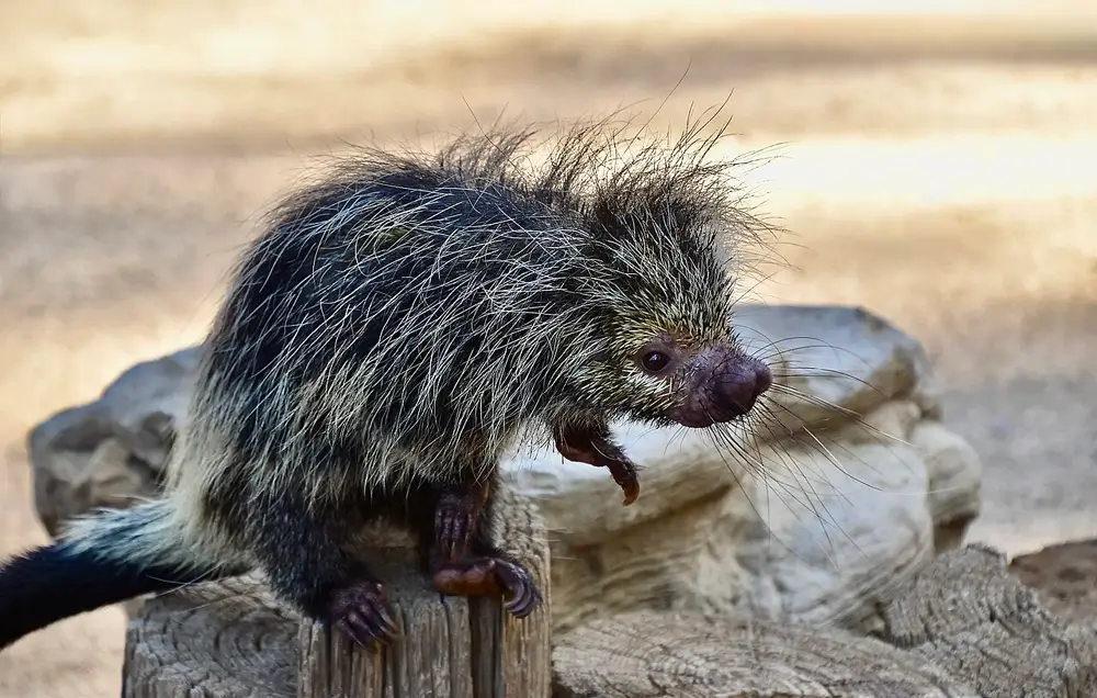 Porcupines are nocturnal and typically live alone or in pairs. They have good hearing but poor eyesight.