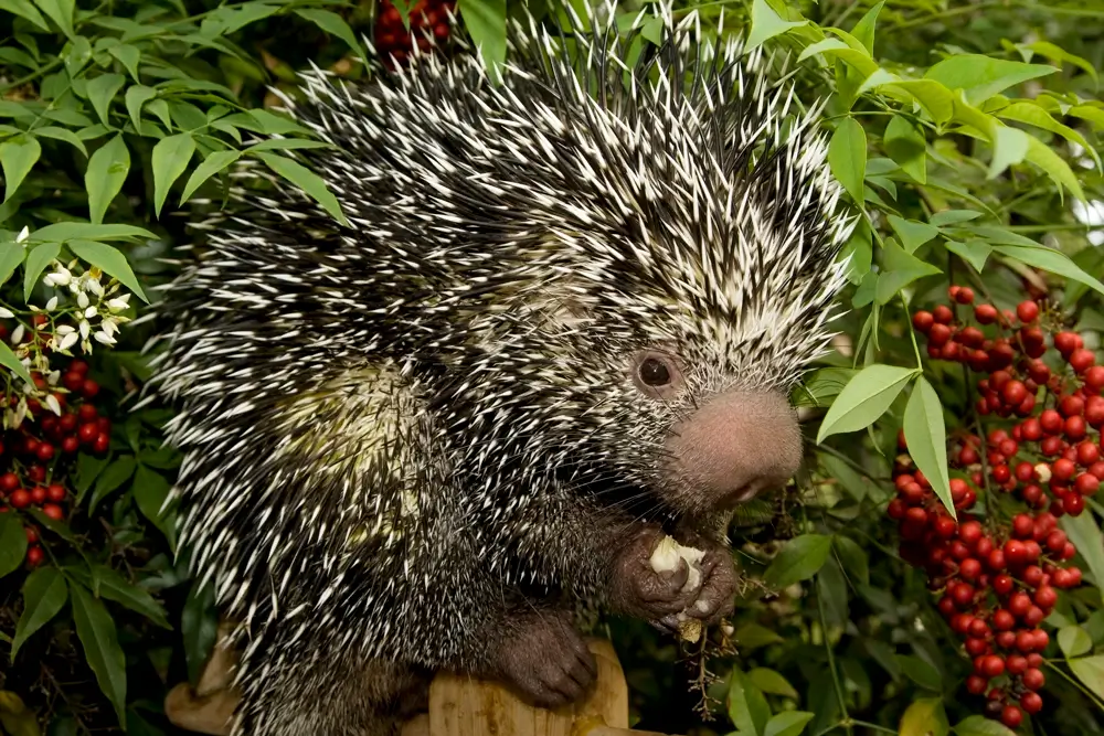 While some species in this family eat insects, amphibians, and reptiles, most are herbivores and eat seeds, fruit, nuts, leaves, and other plant parts. Porcupines are found in a variety of habitats, including coniferous and deciduous forests, mountains, grasslands, and deserts. Some species live in trees while others make their homes in burrows or dens in the ground.