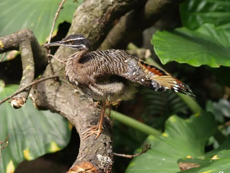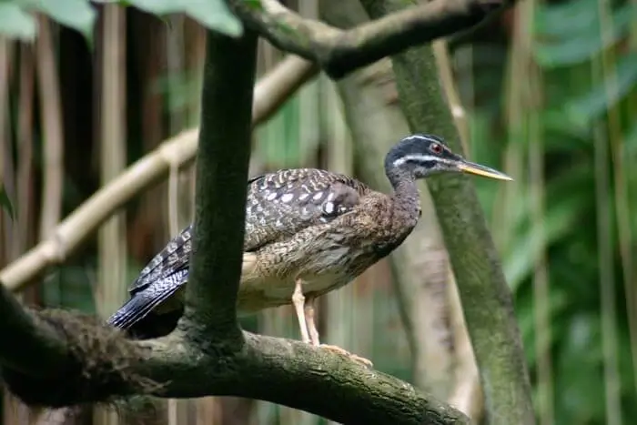 It also uses its wings during courtship to attract a mate. Male and female sunbitterns perform a courtship dance with their tails and wings spread open. Both the male and female build a dome-shaped nest in a tree and incubate the eggs and care for the chicks.