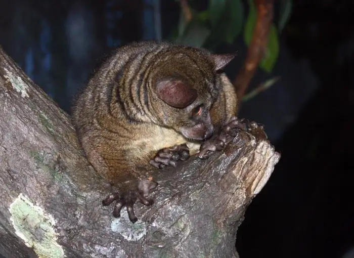 Galagos are nocturnal and live in trees. They live in social groups made up of females and their offspring. Males will eventually leave their mother’s territory.