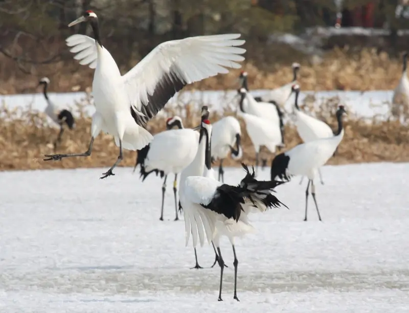 Cranes usually live in flocks, and some are migratory, while others stay in one location all year.