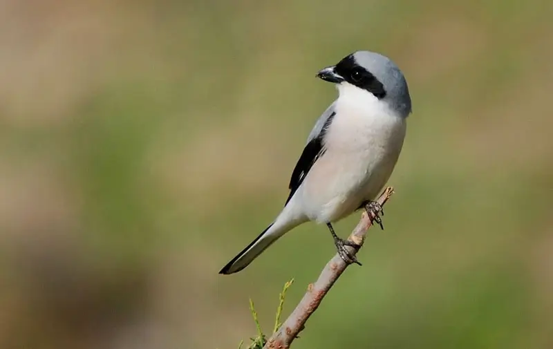 They are 6 -14 inches in length. They have strong, slightly hooked bills and strong, sharp claws. Most species have long, narrow tails. Shrikes are usually black, brown, or gray on their uppersides and a paler color on their undersides.