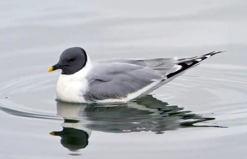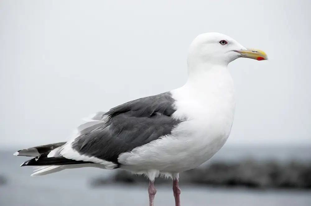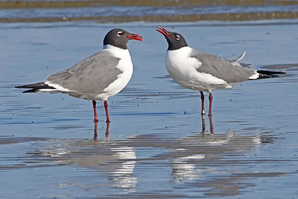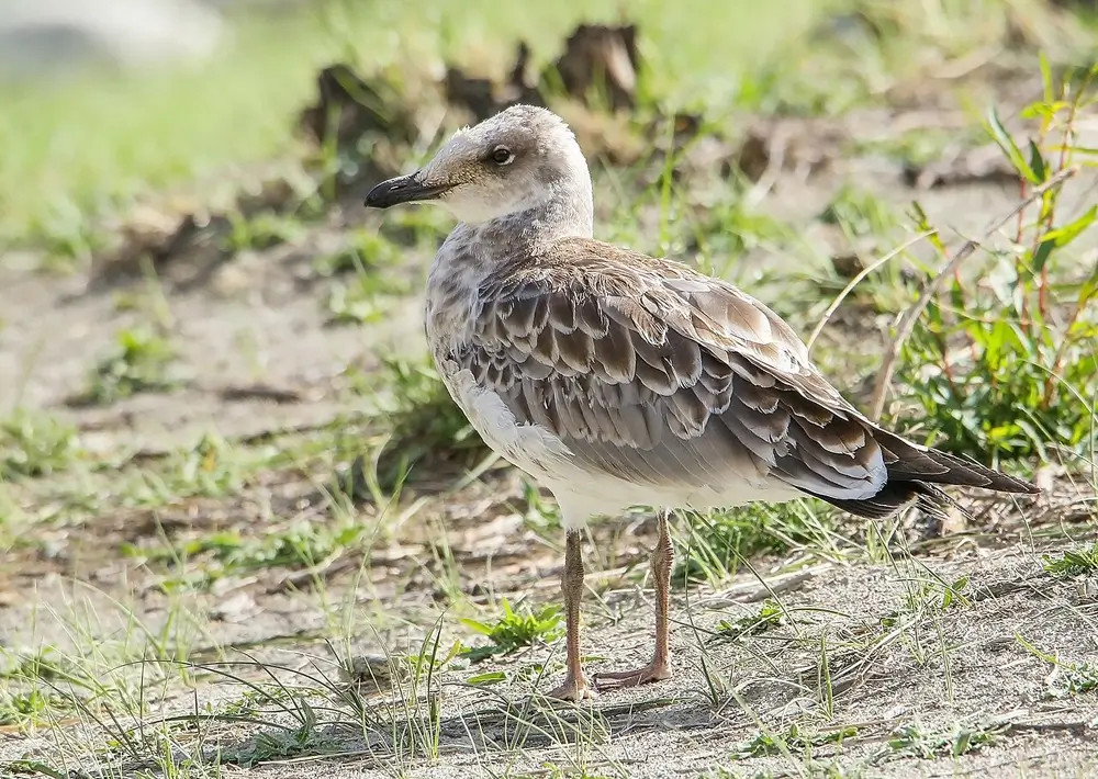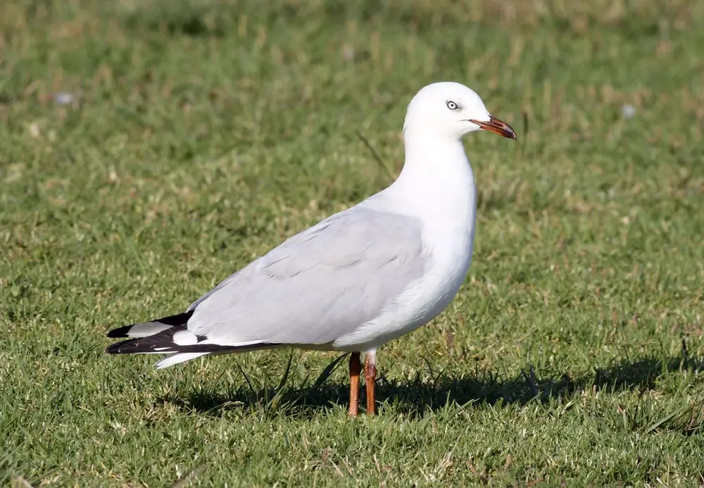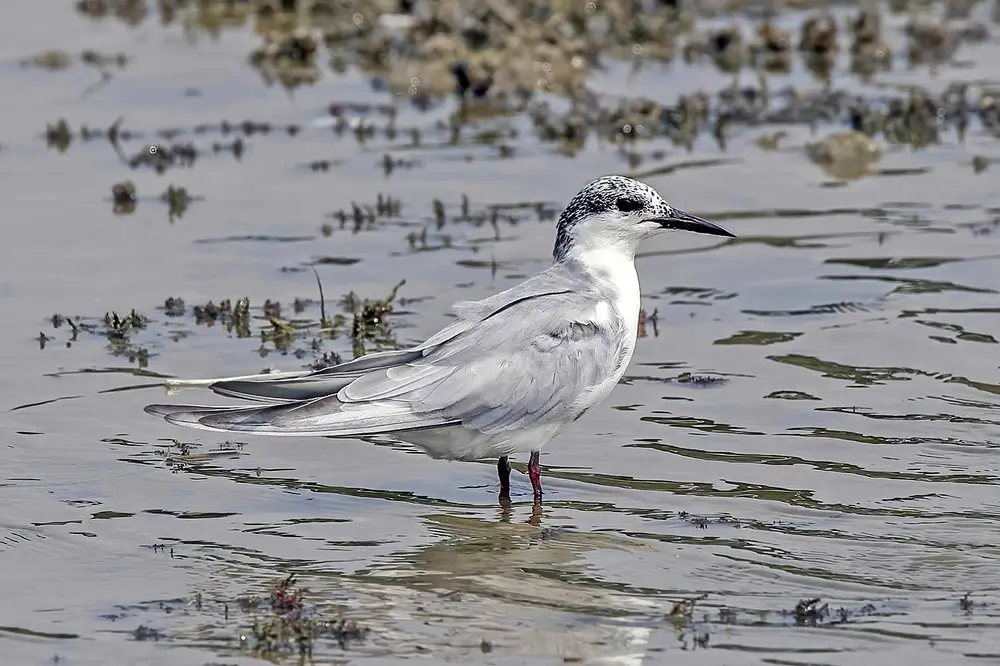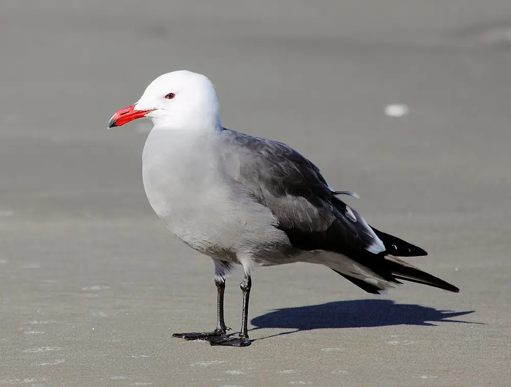 Birds in this family are usually gray or white, often with black or gray markings. They have short legs, webbed feet, and short bills.