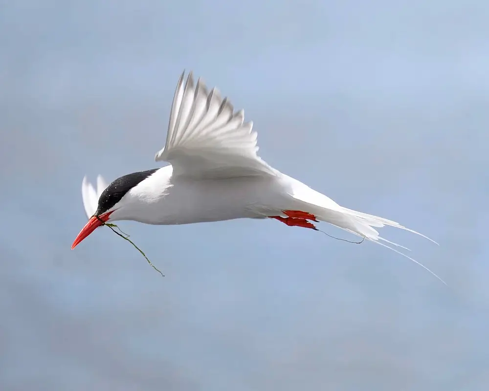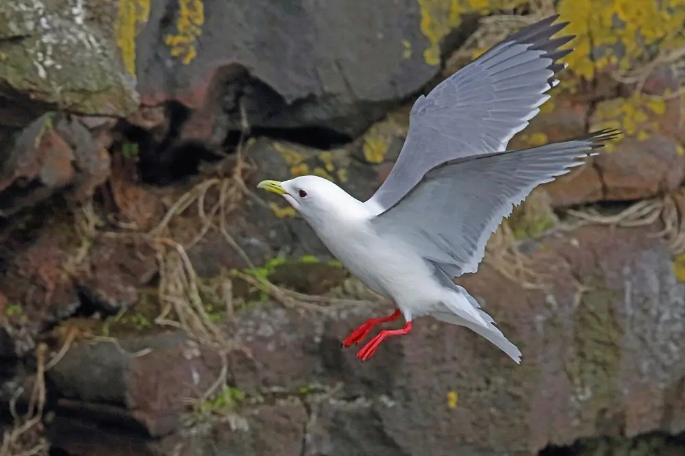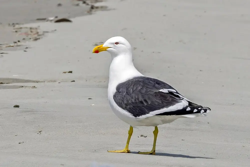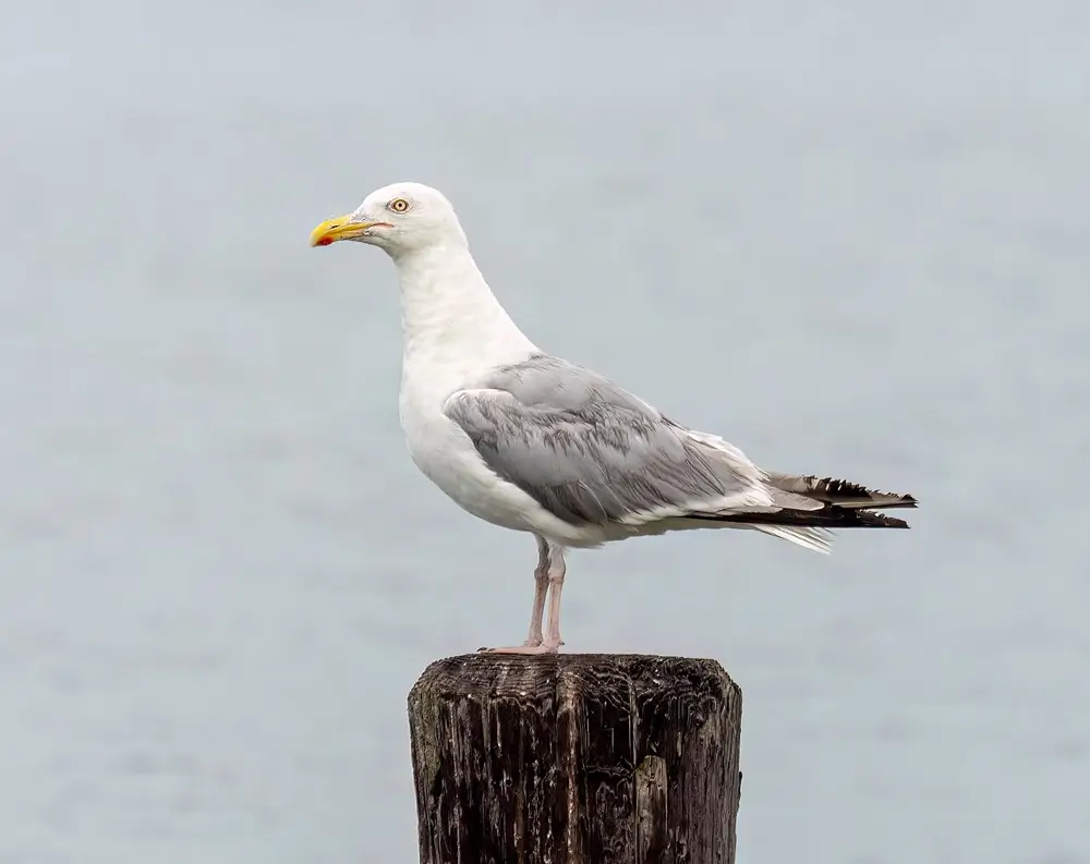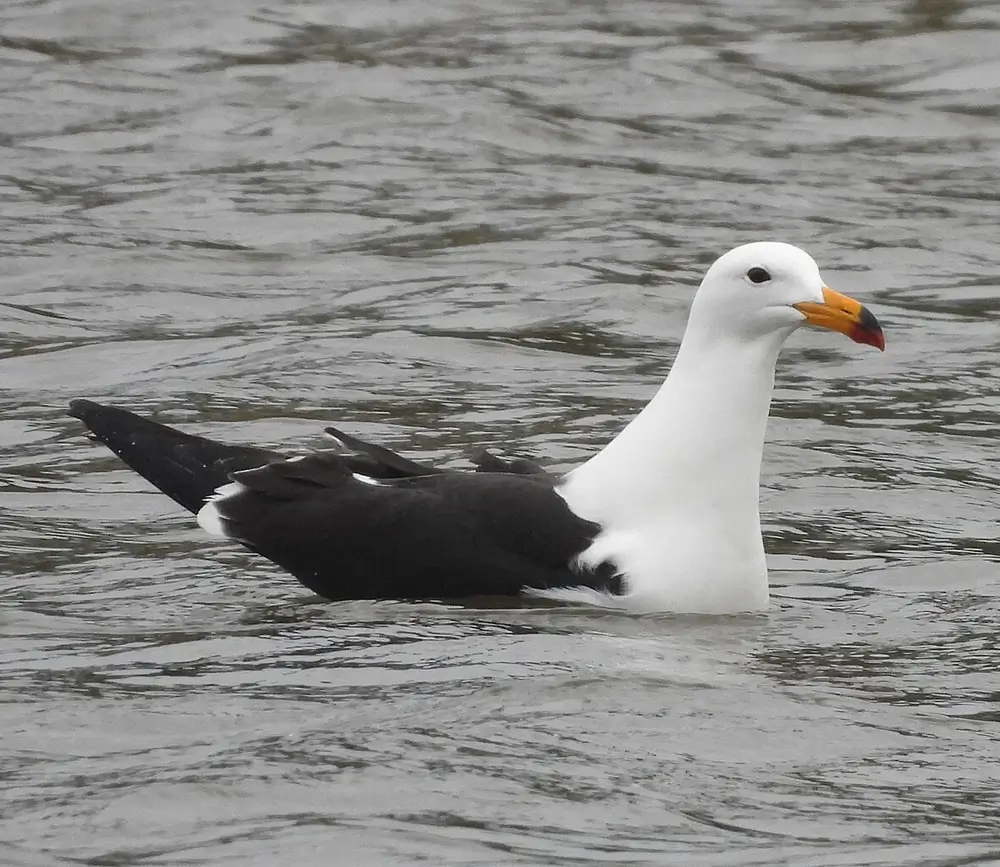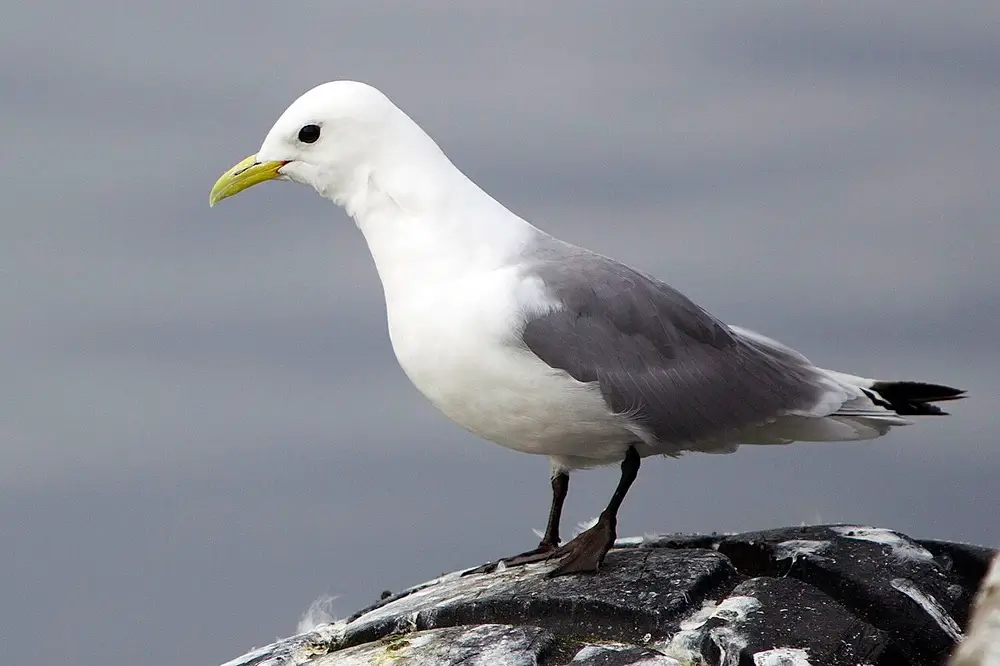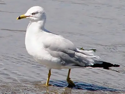 Birds in this family are usually gray or white, often with black or gray markings. They have short legs, webbed feet, and short bills.