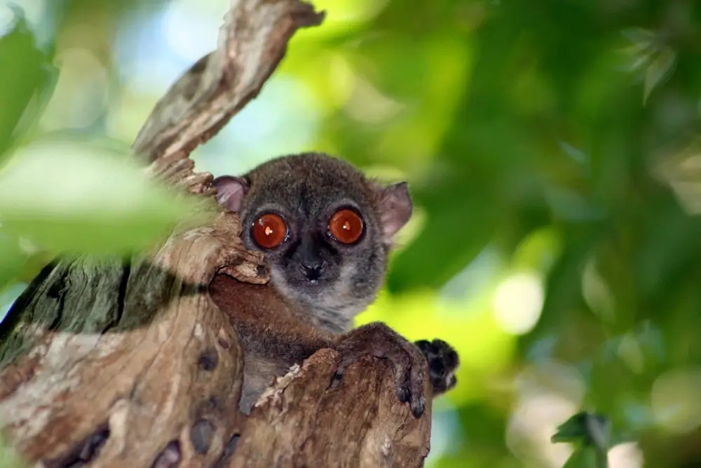 Sportive lemurs are solitary and spend most of their time in trees. The male’s territory is larger than the female’s territory and may overlap with the territory of a few females.