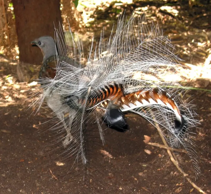 The male lyrebird has a long, elaborate tail that looks like a lyre. A lyre is a type of harp.