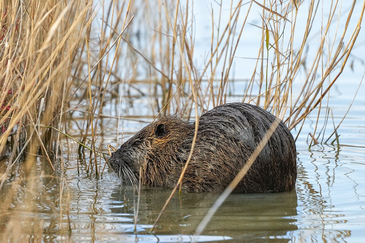 Nutrias are found near lakes, ponds, swamps, rivers, and marshes. A nutria can stay submerged underwater for several minutes, and sometimes it floats in the water with just its nose and eyes above the water.