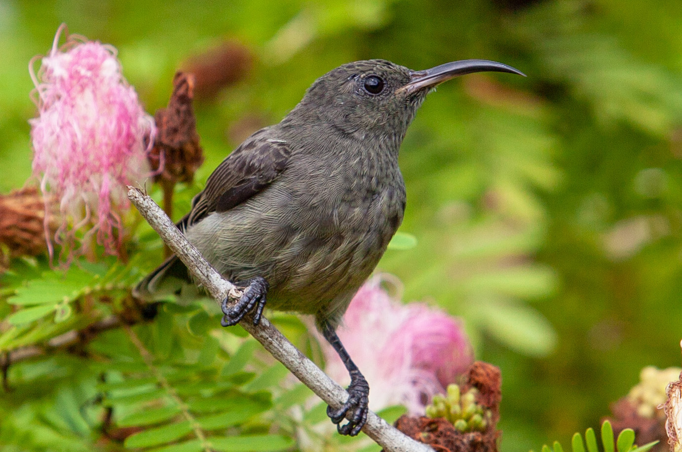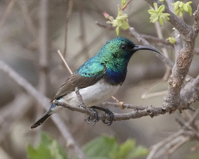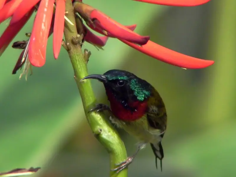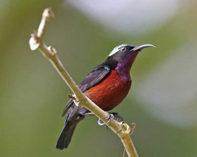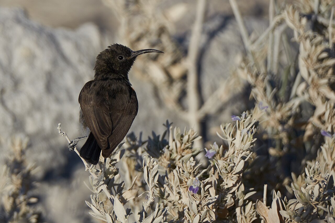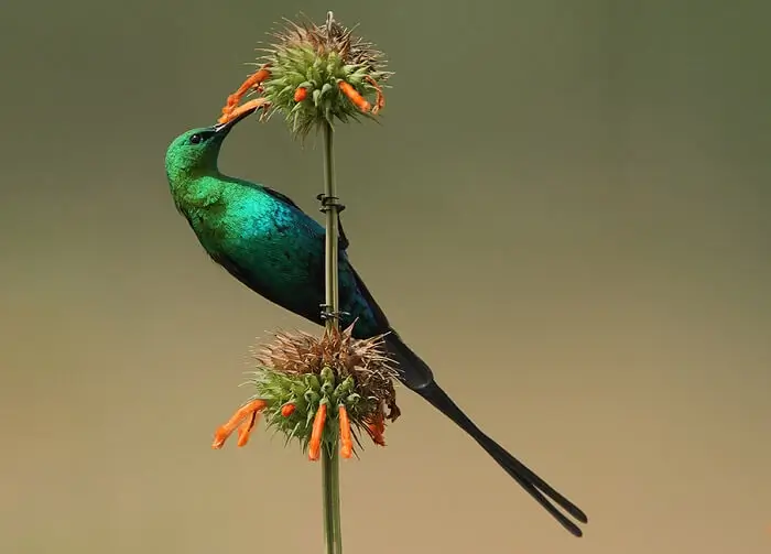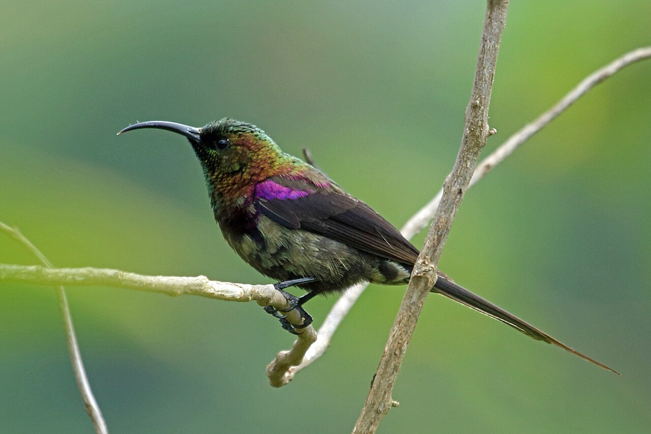 They are small birds, between 3-8 inches in length. They have long, thin, down-curved bills; long tongues; medium to long tails; and short legs.