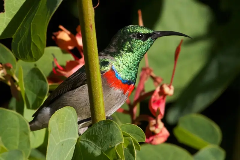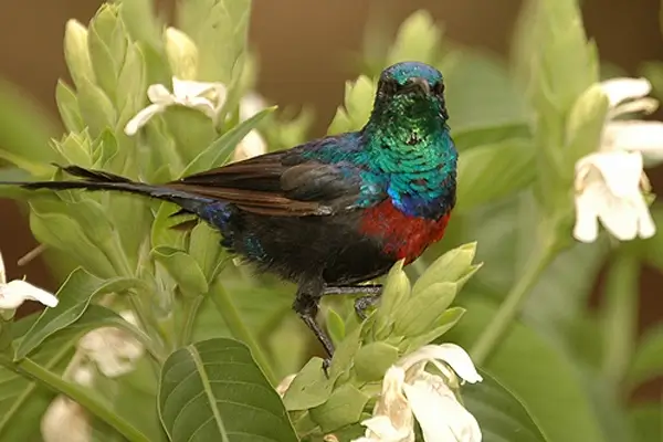 They are found in forests and scrublands. They eat nectar, insects, and small fruits. They are very good fliers and some can hover like hummingbirds while taking nectar, but most perch to feed.