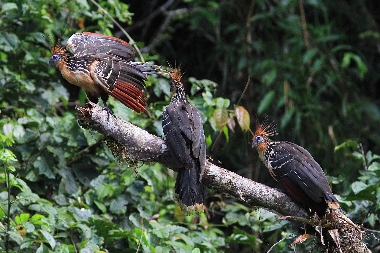 There is only one bird in this family, and it is a strange bird! The hoatzin (Opisthocomus hoazin) is found in the rainforests of the Amazon.