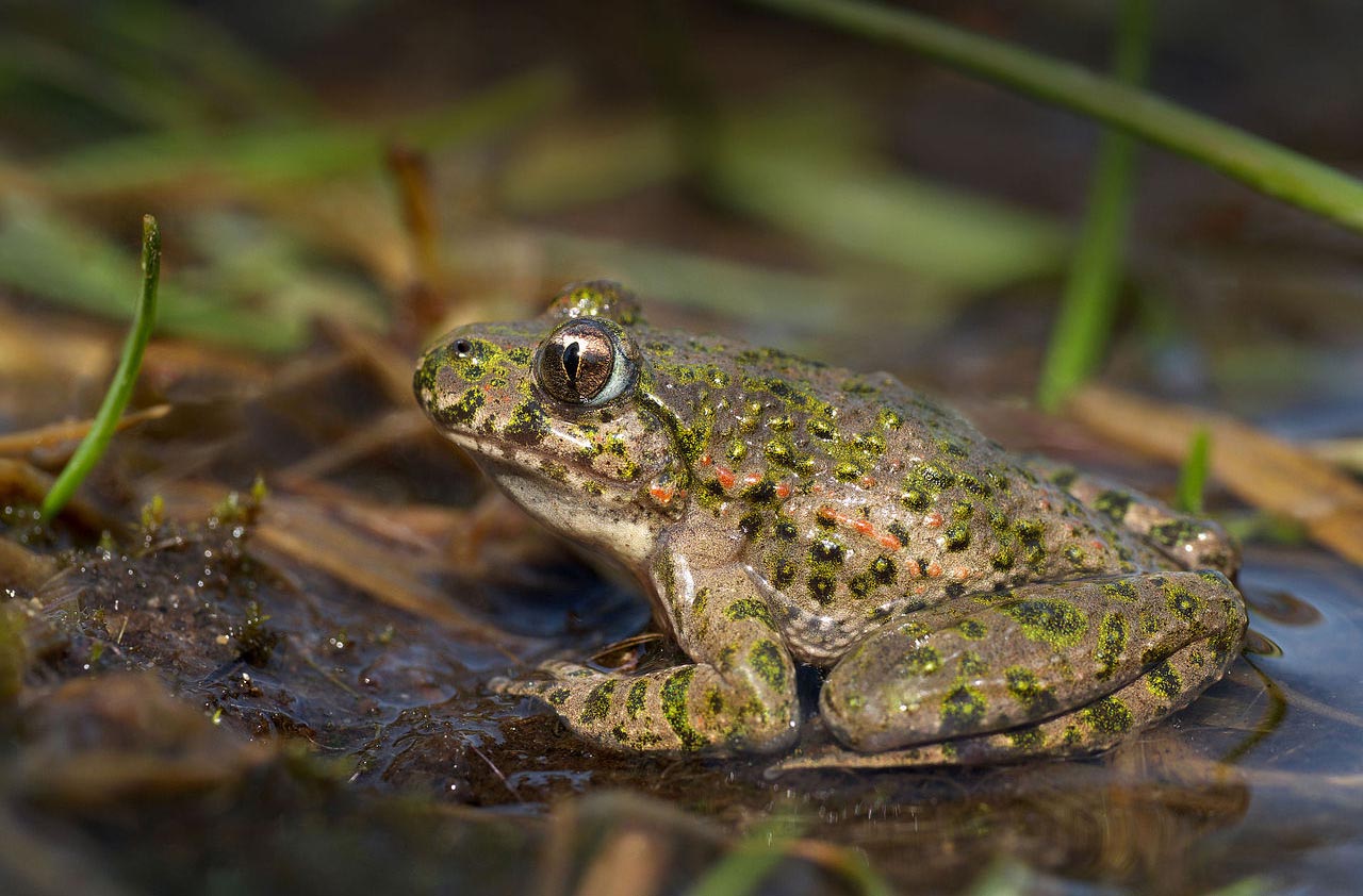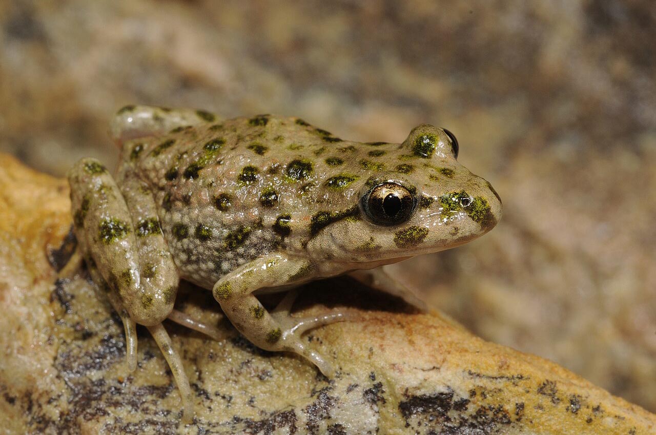The Caucasian parsley frog is found in the Caucasus Mountains in Azerbaijan, Georgia, Russia, and Türkiye at altitudes of up to 7,500 feet.