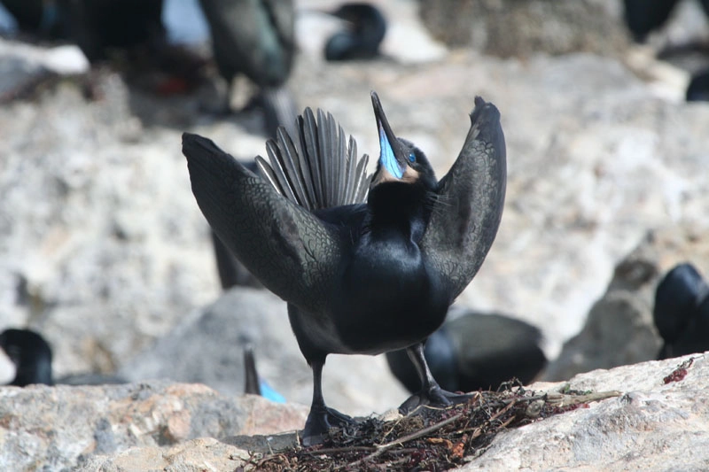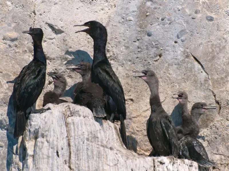 Cormorants and shags nest in colonies, and both the male and the female care for and feed the chicks.