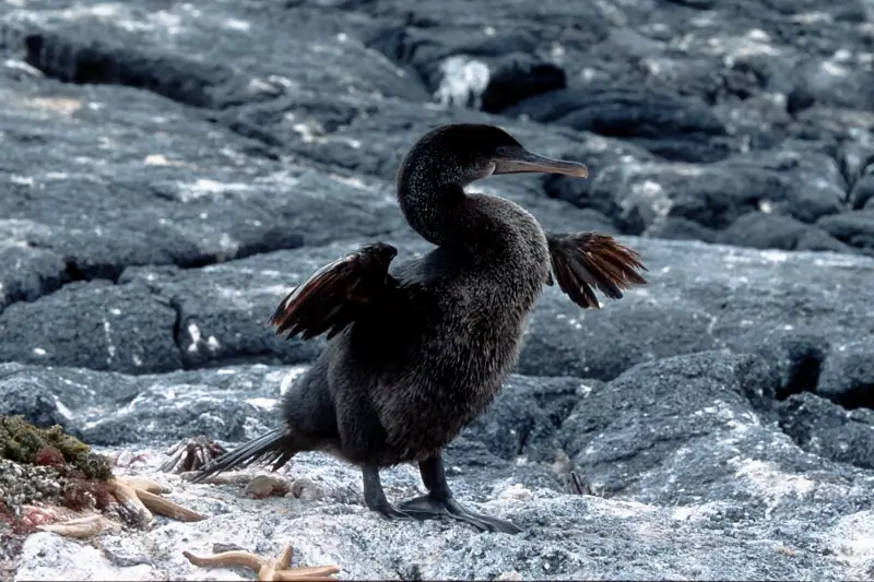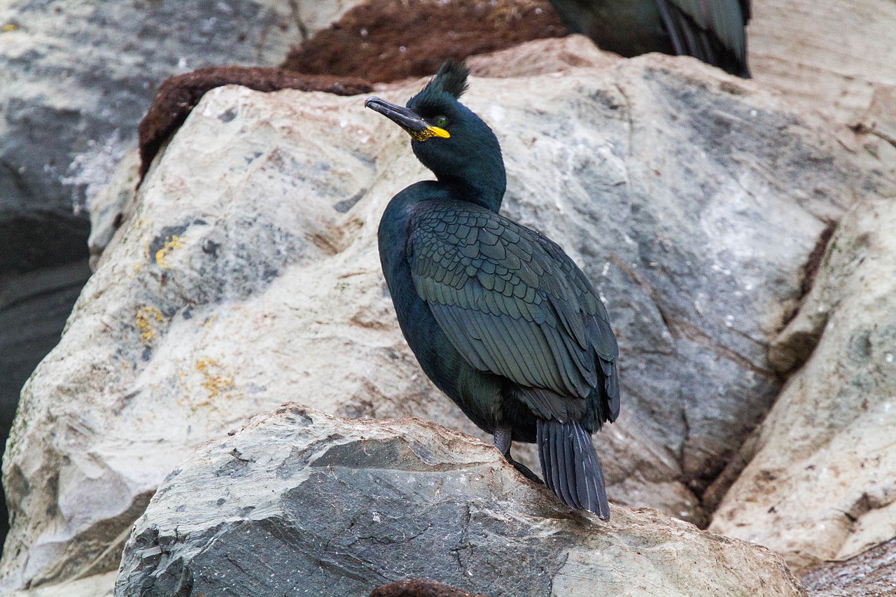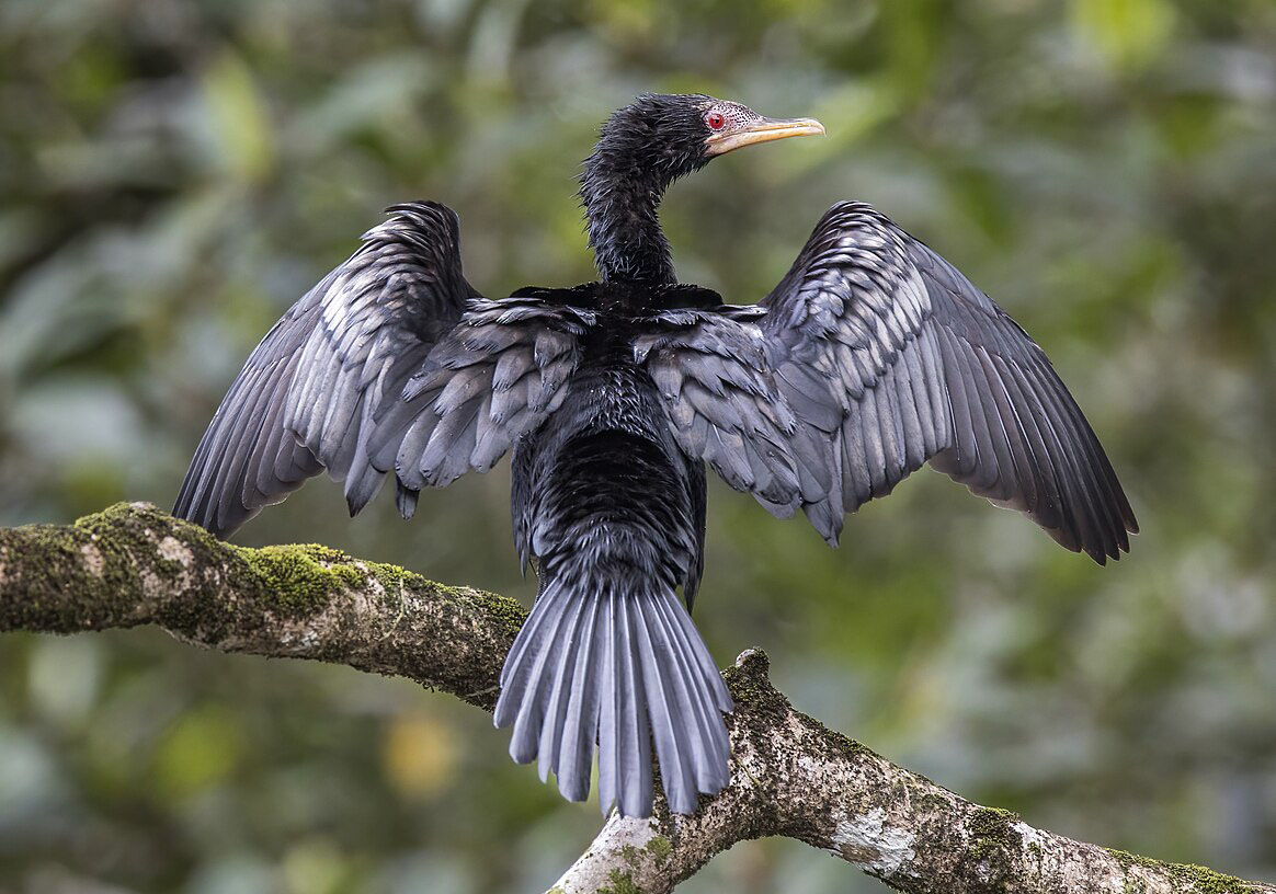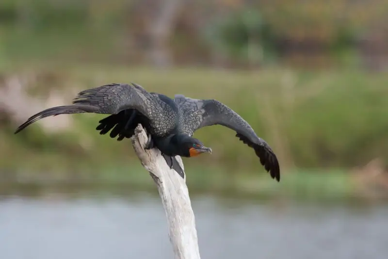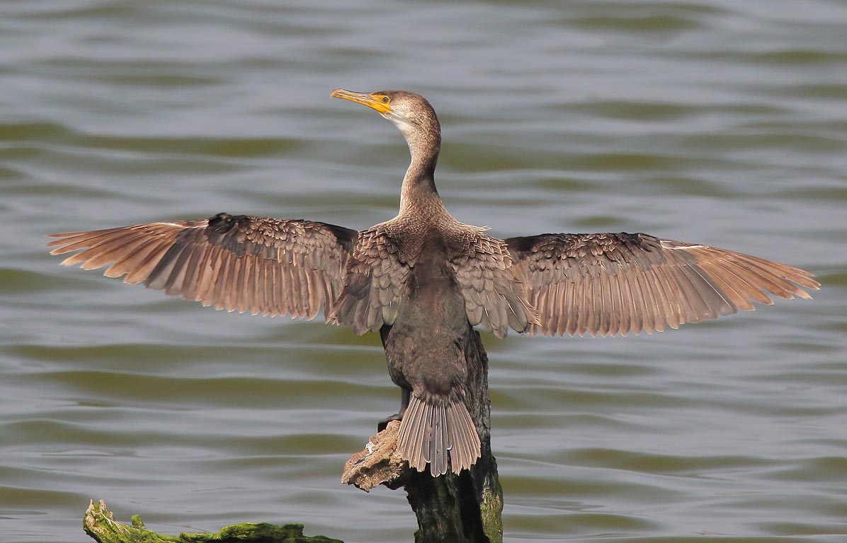 Unlike most water birds, the feathers of the birds in this family don’t have the waterproofing oil found in most water birds. Cormorants and shags dry their feathers by perching and holding out their wings.