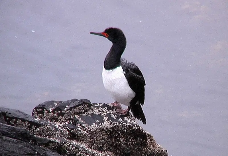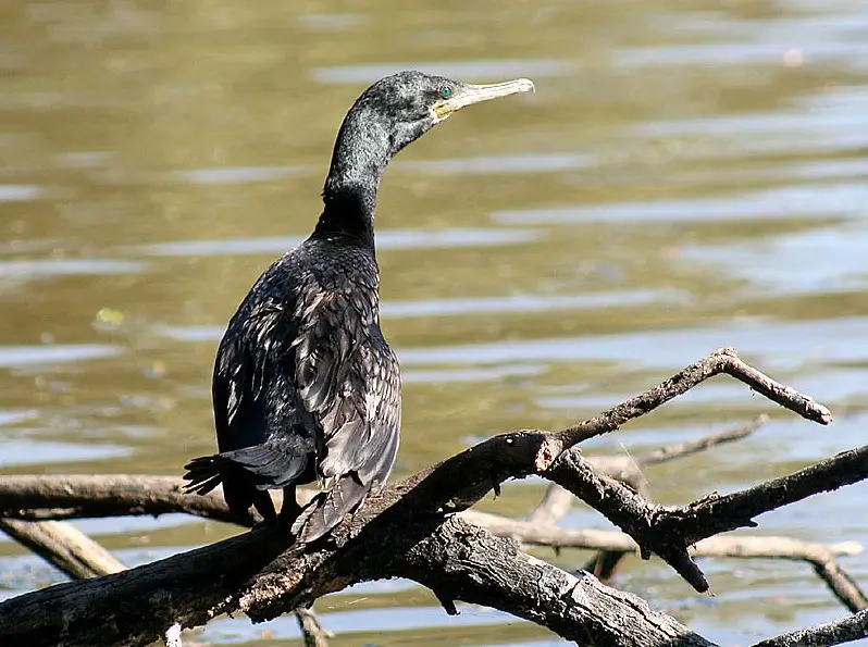 Cormorants and shags live on lakes, rivers, marshes, swamps, and ocean shorelines. Most species are black with a bare face. They have a long neck and a long, thin, hooked bill. Males and females look alike, but males are usually larger.