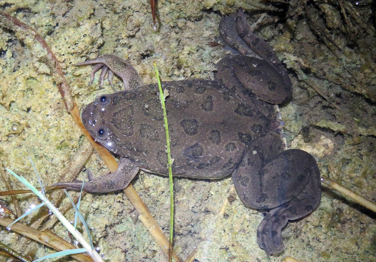 The frogs in this family rarely come out of the water. They even have a special adaptation in their ears that allows them to hear underwater.
