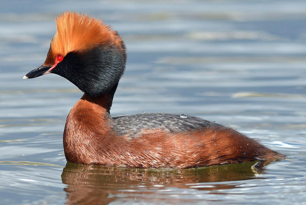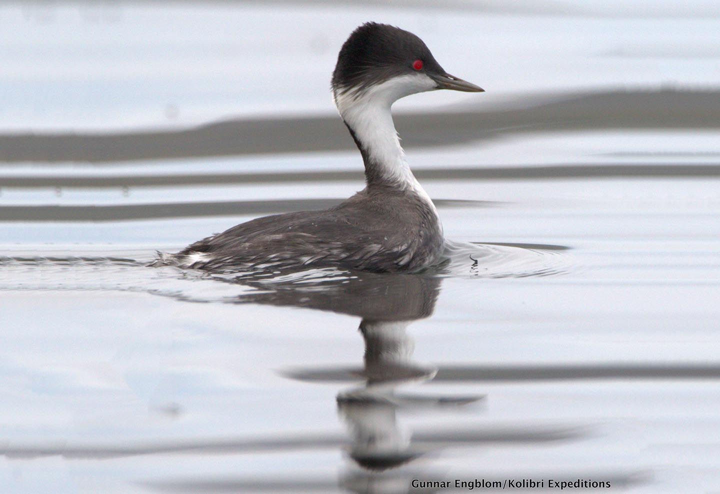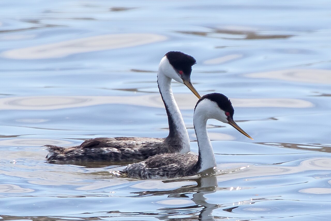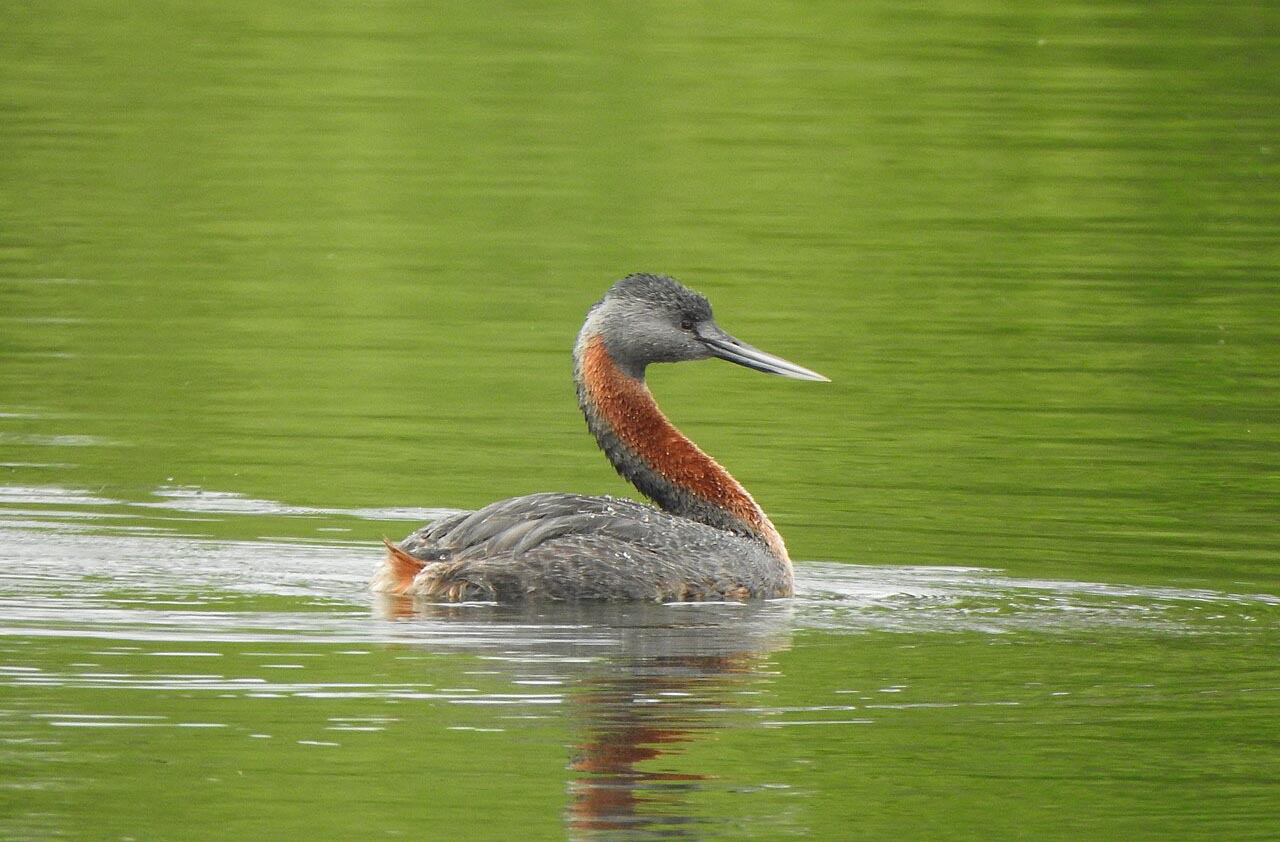 Grebes are very good divers and swimmers. They often swim with just their heads above the water.