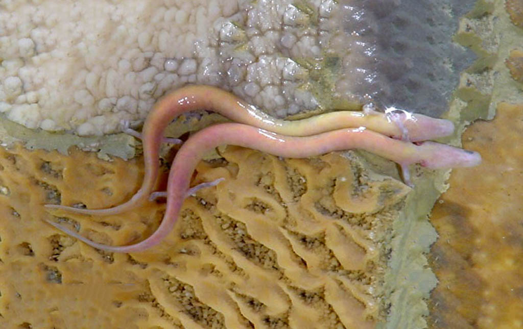 One species in this family, the olm, lives in limestone caves in southeastern Europe.
