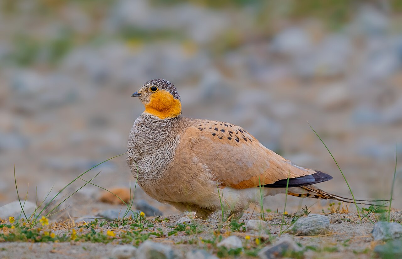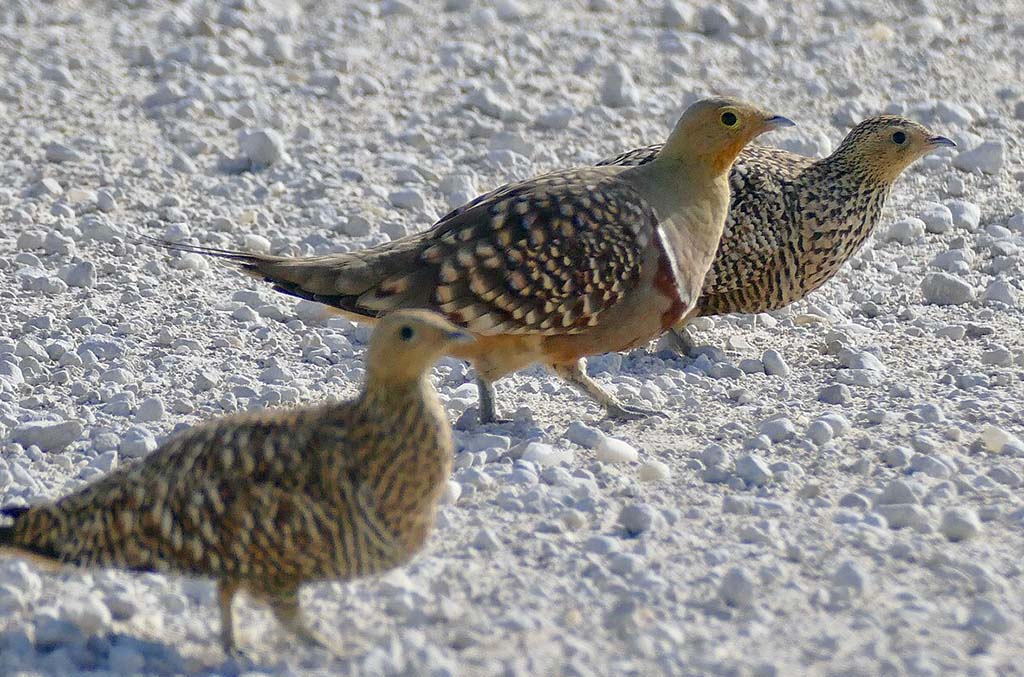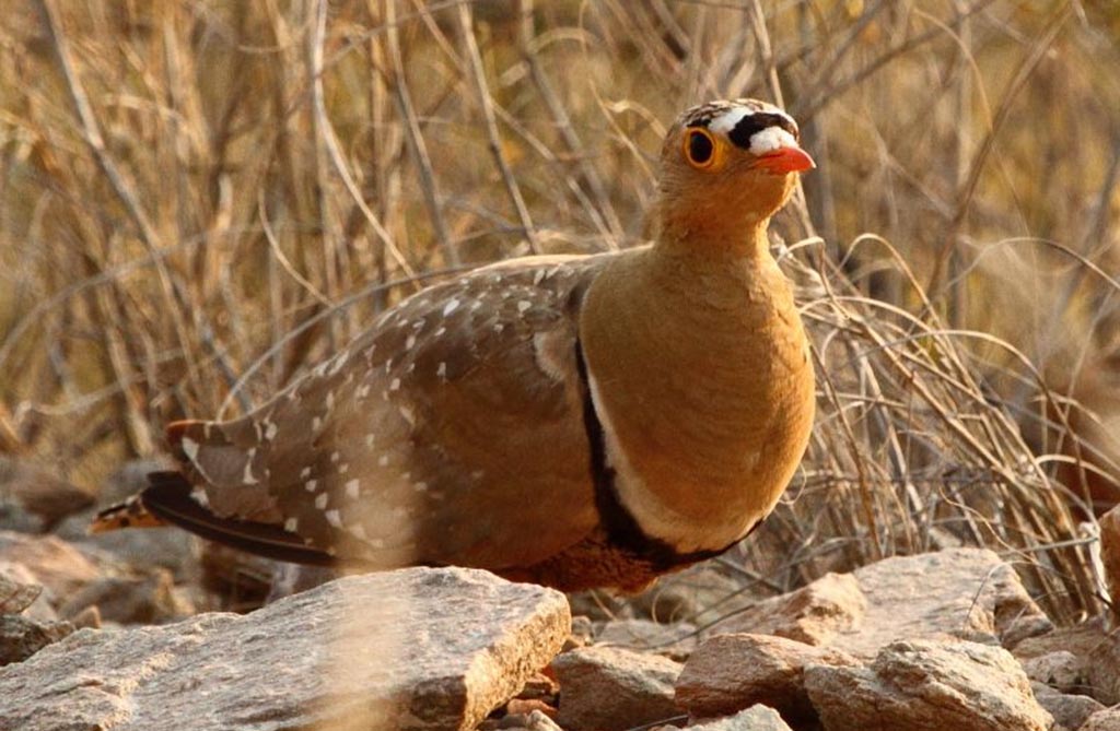 There are 16 species in this family. Sandgrouse are found in dry, open areas such as deserts and grasslands in Africa, Asia, and parts of Europe.