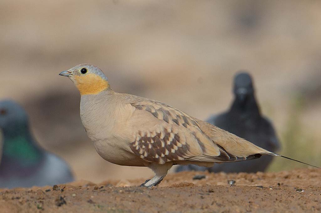 They usually feed on seeds and often gather in large flocks. Their sandy-colored feathers help them blend into their dry surroundings, protecting them from predators.