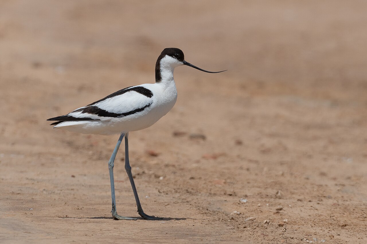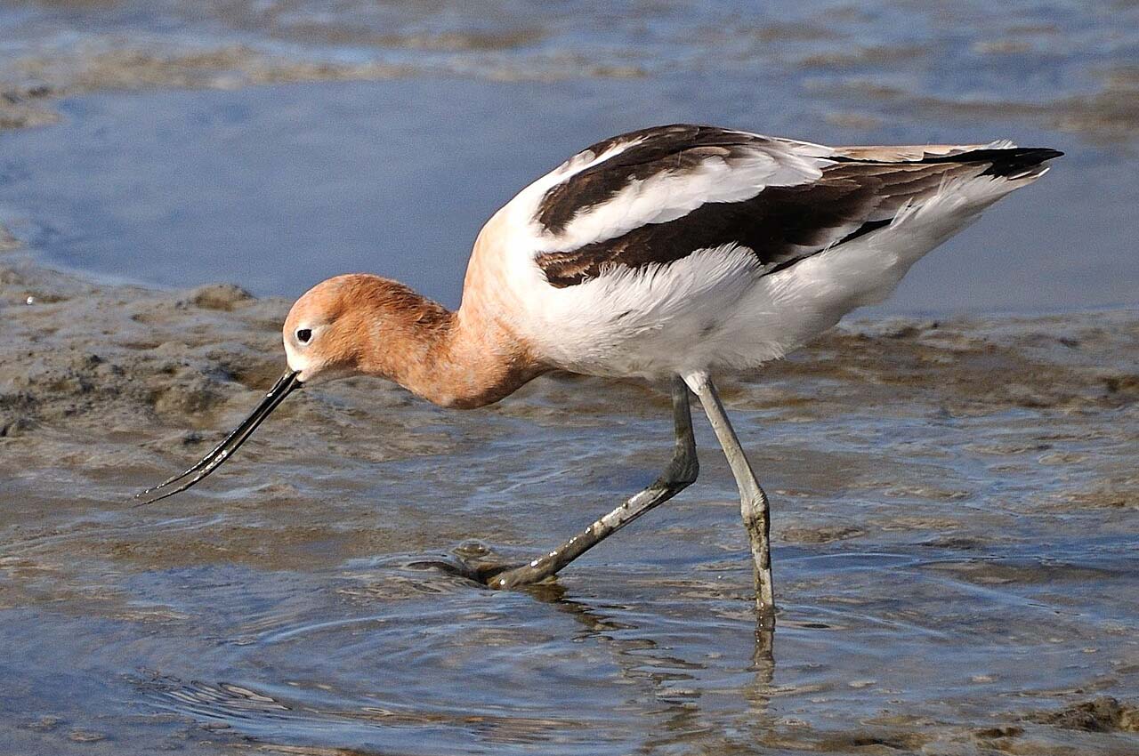 Most species of avocet and stilt are black and white. The American avocet’s head and neck are a rusty red in breeding season and grayish white in winter. The red-necked avocet has a reddish brown head and neck.