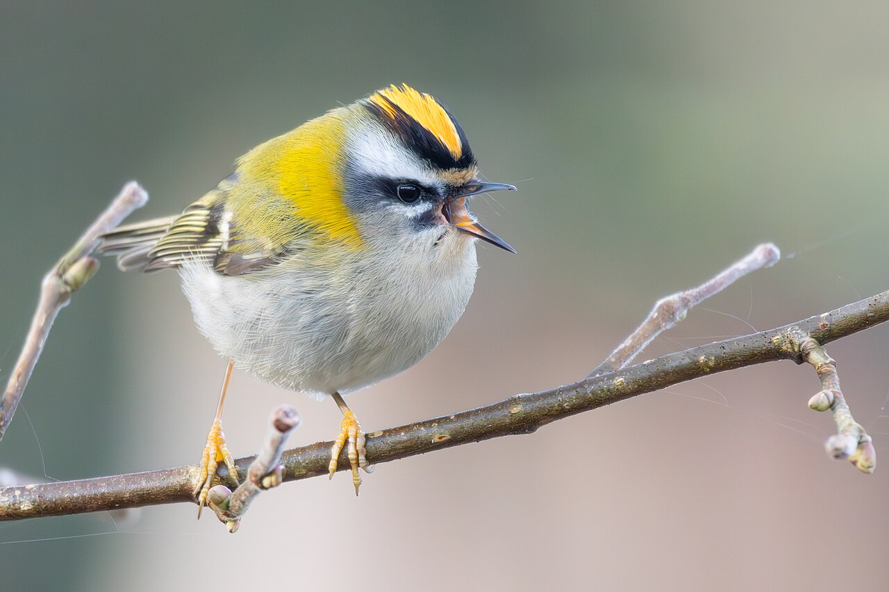 The birds in this family are tiny birds, around 3-5 inches in length. They have big, rounded heads, small, pointed wings, and small, pointed bills. They are gray to olive in color and often have a yellow or orange patch on the crown of their heads.
